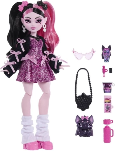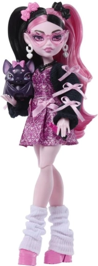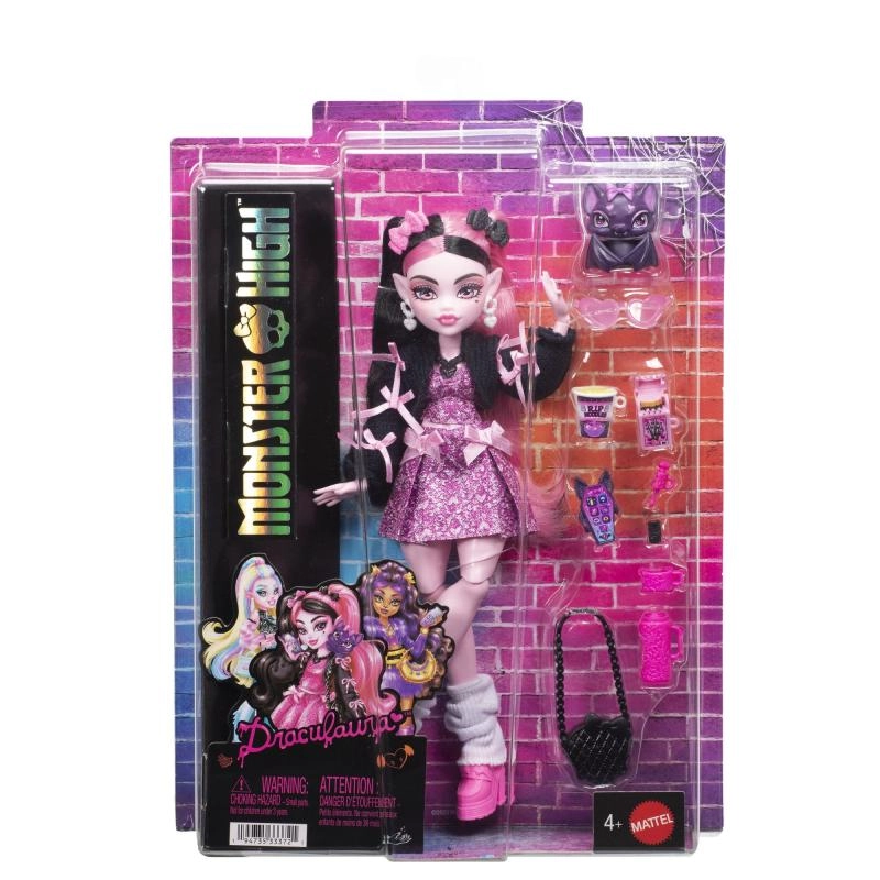 Oplev Draculauras ikoniske stil og charme i et moderne design. Dukken fra Monster High imponerer med rosa‑sorte lokker, lag-på-lag tøj og nøje udvalgte modedetaljer, der vækker fantasien og historiefortællingen. Med følger den søde flagermus Count Fabulous og et udvalg af tema-tilbehør til både leg og udstilling.