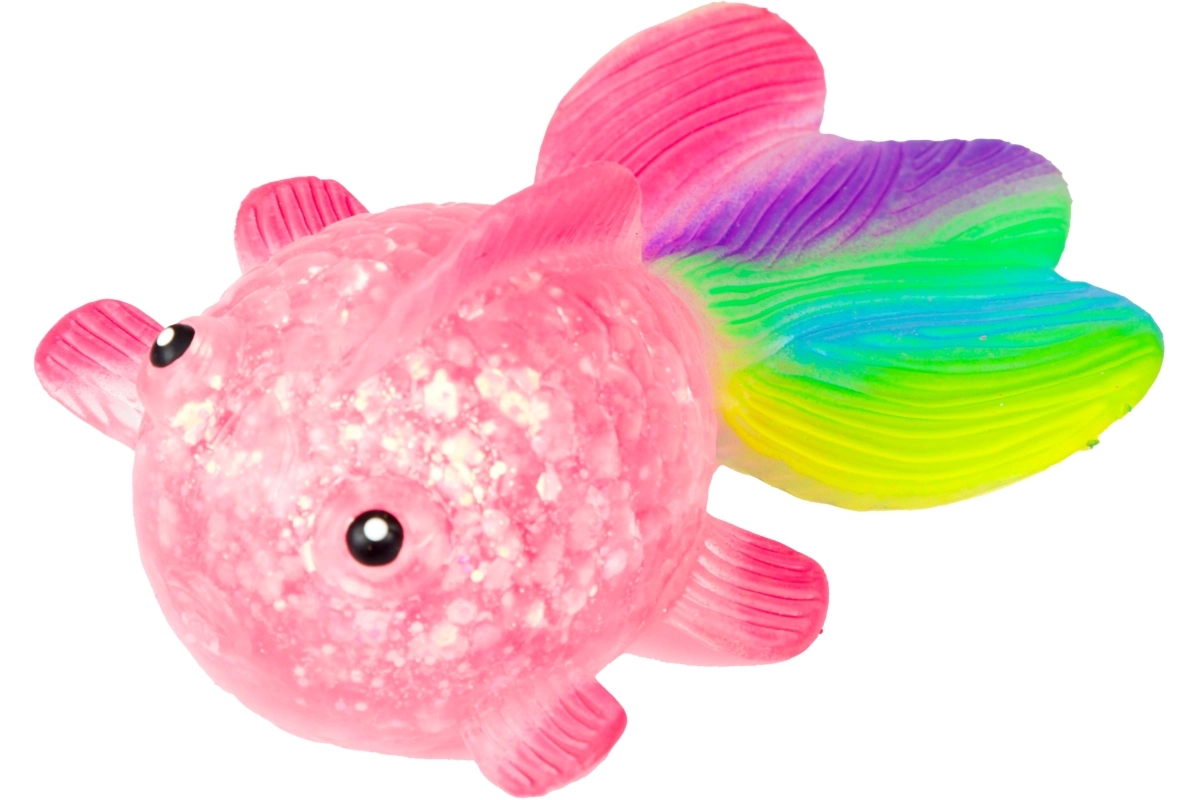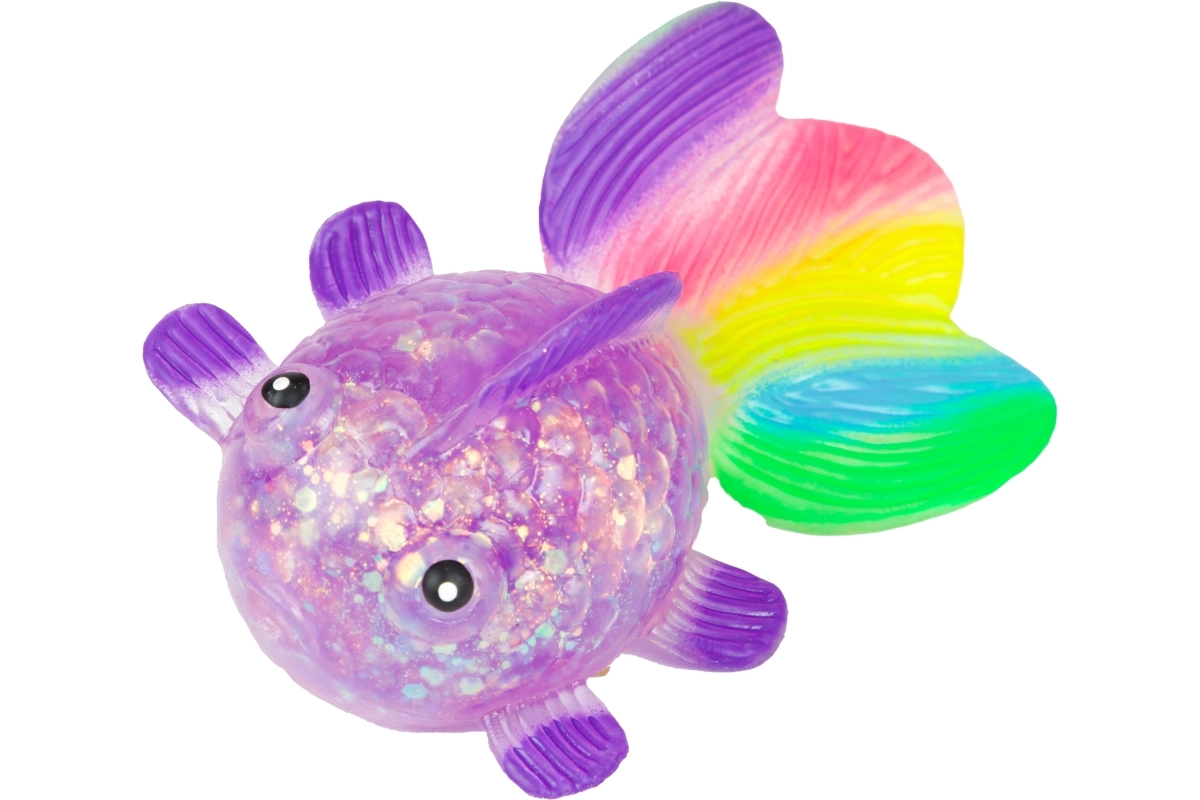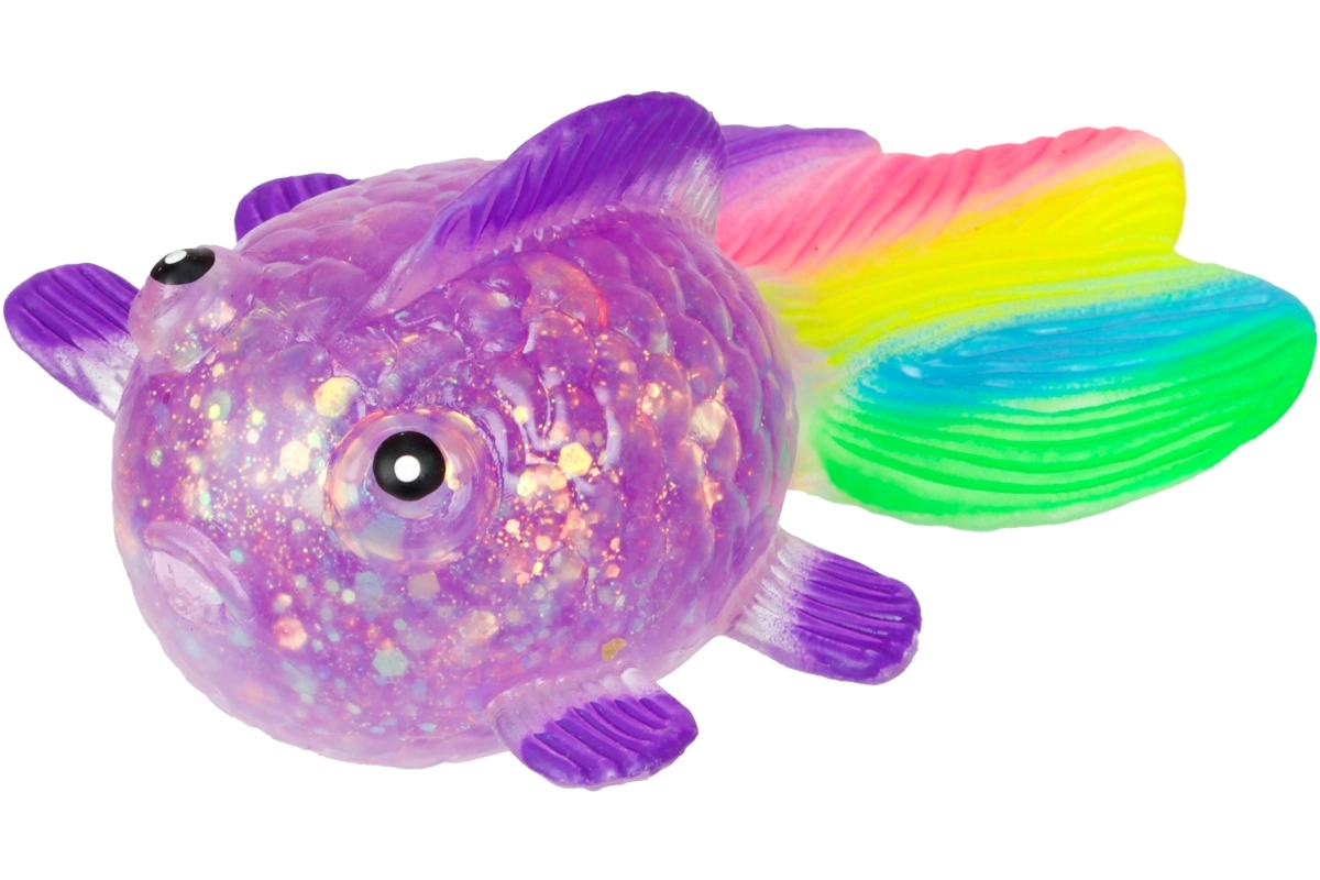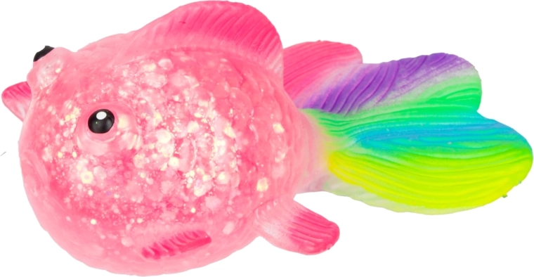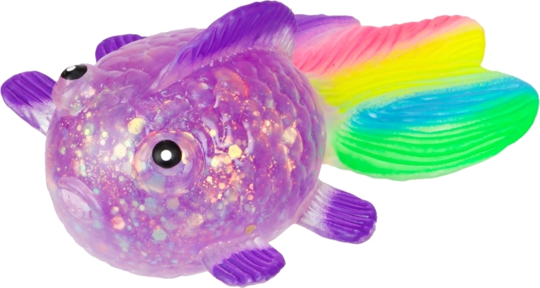 Oplev den beroligende følelse ved at klemme den søde glitrende fisk med blød gelékrop, gennemsigtig effekt med glimmer og farverig hale. Takket være den kompakte størrelse 12×7×4,5 cm ligger den behageligt i hånden og er ideel til rolige stunder derhjemme, i skolen og på kontoret.