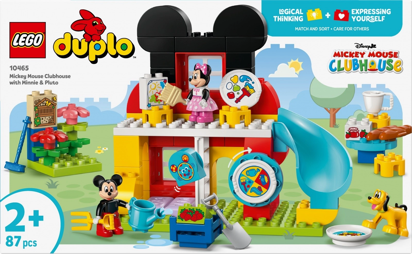 Sættet indeholder alt til rig leg: en toetagers klub med store, småbørnsvenlige klodser, rutsjebane, atelier, have med insekthus, borde og stole samt en særlig dør til Pluto. Med følger figurerne MICKEY, MINNIE og PLUTO samt en printet klods med en computer, der understøtter historiefortælling og rolleleg.