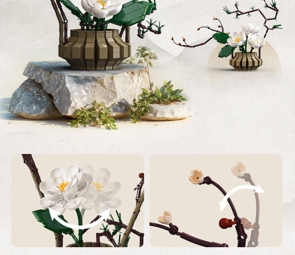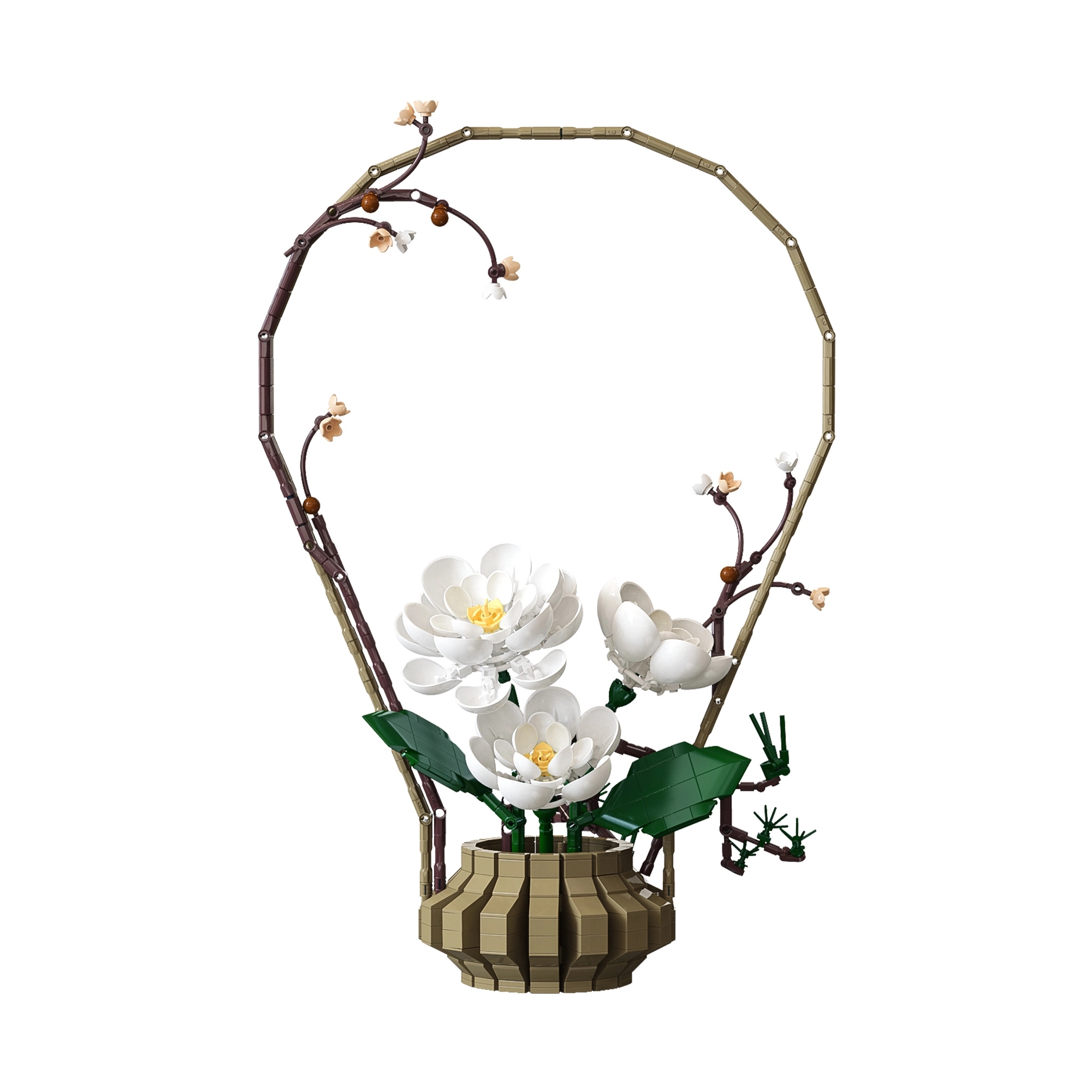 Bring et strejf af natur ind i hjemmet uden vanding. Dette elegante CaDA-byggesæt lader dig samle din egen blomsterarrangement inspireret af vinterblomster. Sættet indeholder 1001 dele og måler 49,6 cm i højden efter samling, så det er perfekt som en stilfuld dekoration til bord, hylde eller kommode.