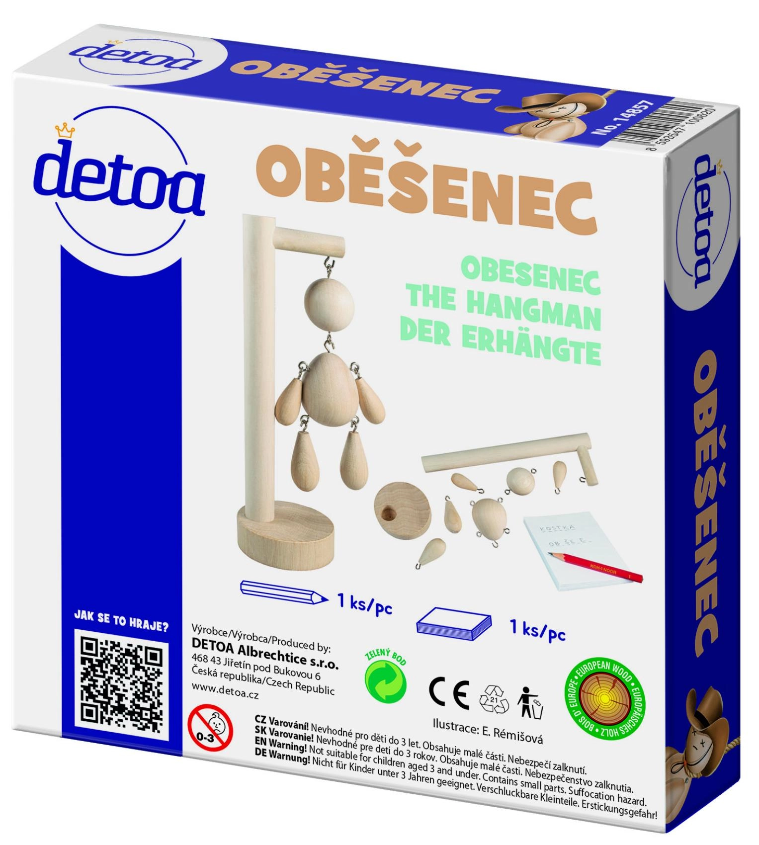 Hangman er et makabert sjovt, men klogt ordspil for to spillere. Den ene finder på et ord, den anden gætter bogstaver – og for hvert fejlskud nærmer den uundgåelige hængning sig. Trækonstruktionen og den kompakte æske sikrer lang holdbarhed og nem transport.
