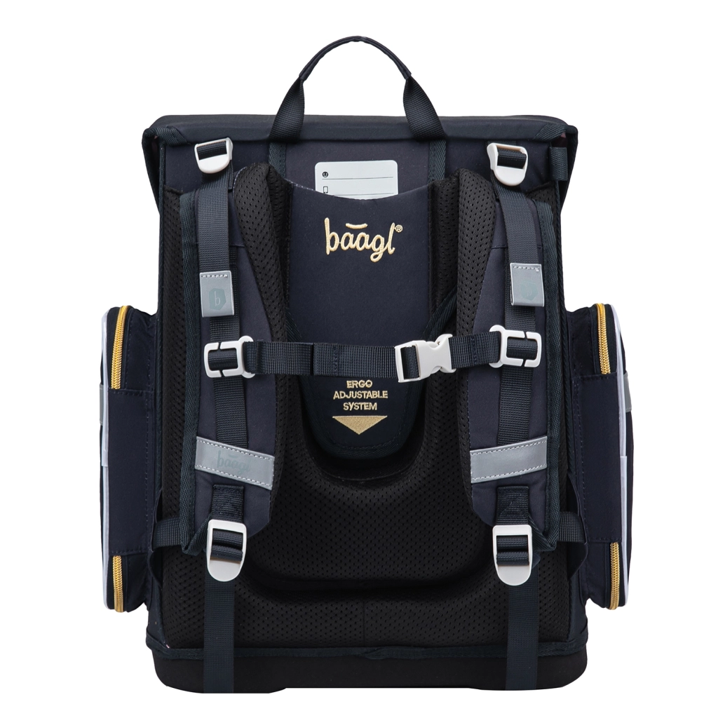 Skolesættet BAAGL Ergo Unicorn Gold er designet til komfortabel og sikker transport af skoleudstyr fra 1. klasse. Den ergonomiske skoletaske med solid bund og lav vægt på op til 1200 g giver stabilitet og sund vægtfordeling. Det justerbare rygsystem ERGO ADJUSTABLE SYSTEM, fuldt justerbare stropper og brystrem hjælper med at tilpasse tasken perfekt til barnets krop.