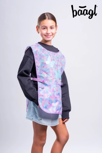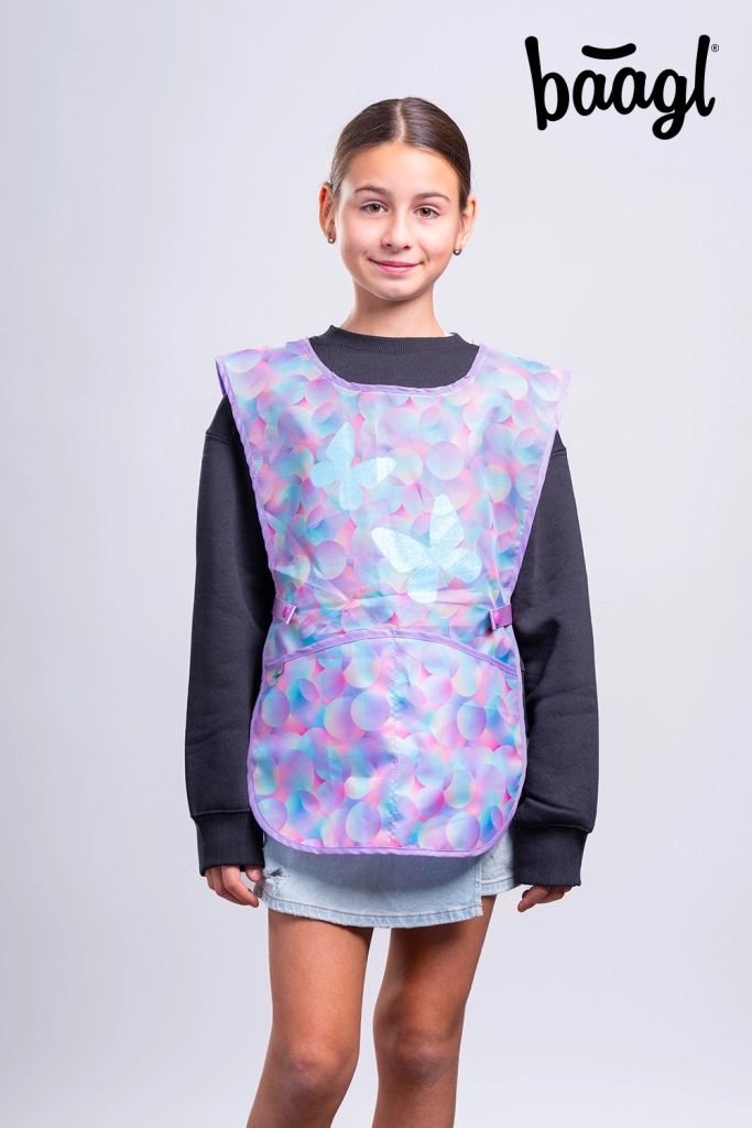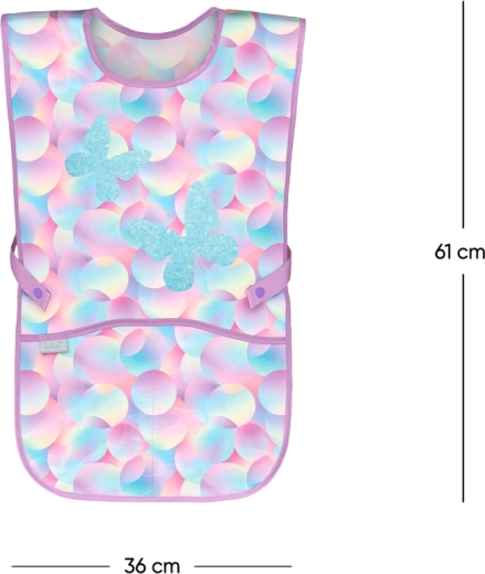 Giv børnene frihed til at skabe uden bekymring for pletter. BAAGL Candy børneforklæde med blidt pastelmønster og sommerfugle er ideelt til billedkunst, håndarbejde og kreativitet derhjemme. Den robuste, glatte overflade tørres let af og tørrer hurtigt, så den er klar til brug igen på ingen tid.
