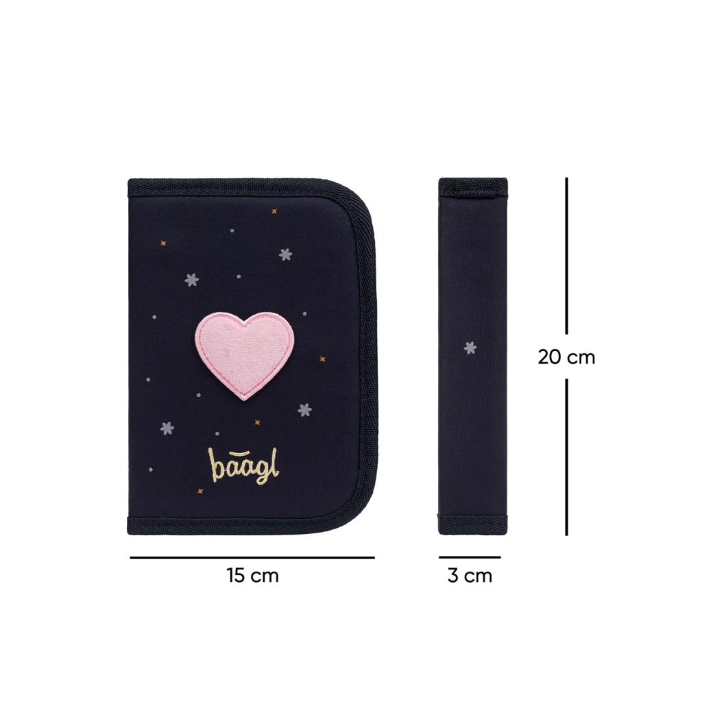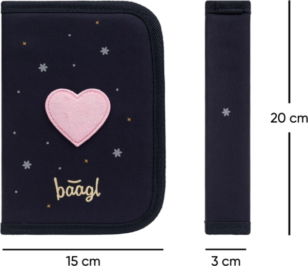 Det praktiske og robuste penalhus BAAGL Unicorn Gold kombinerer elegant design med gennemtænkt funktionalitet. Den enkeltetagers konstruktion med to flapper og den kvalitetsrige YKK-lynlås sørger for nem og sikker opbevaring af skriveredskaber. Indvendigt finder du både en lille lomme til småting og et vindue til skema for hurtigt overblik.