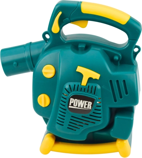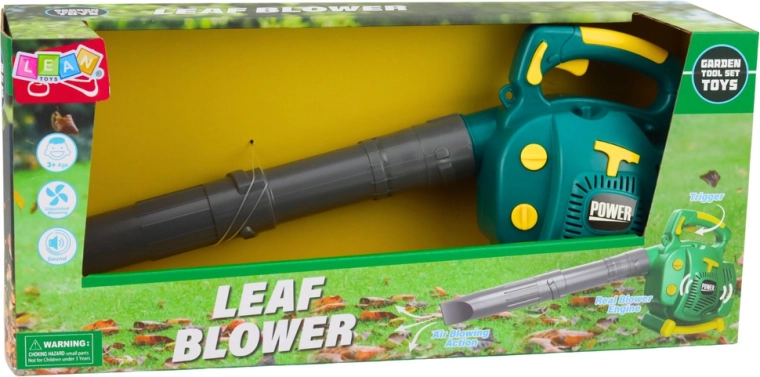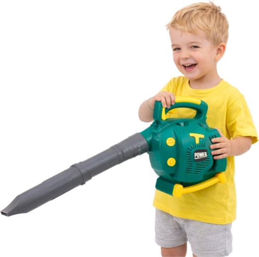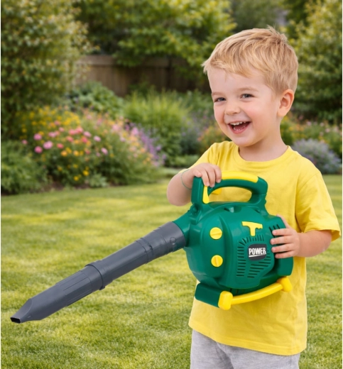 Denne grønne bladblæser til børn efterligner troværdigt et rigtigt haveværktøj. Når den startes, afgiver den realistiske lyde og skaber en luftstrøm, hvilket gør legen medrivende og støtter kreativitet og fantasi.