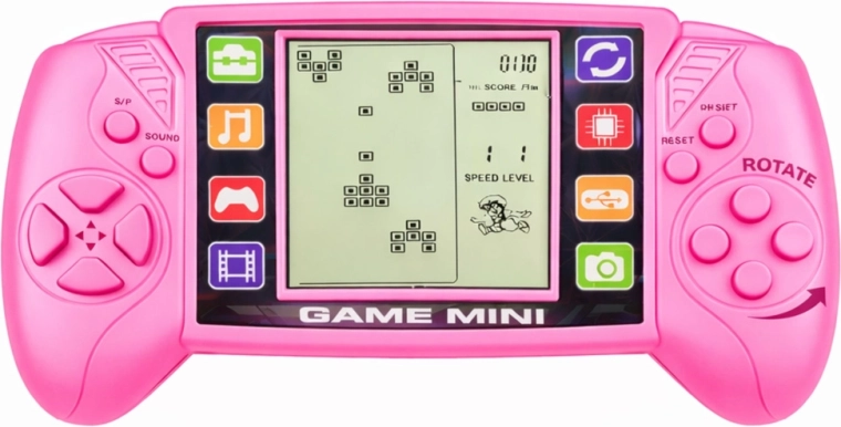Kompakt bærbar konsol med klassikeren TETRIS tilbyder timevis af underholdning hvor som helst – derhjemme, på farten eller i pausen. Har en letlæselig LCD-skærm, behagelige kontrolknapper og enkel betjening velegnet til både børn og voksne. Udvikler logisk tænkning, reaktionsevne og planlægning.
