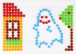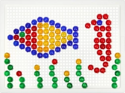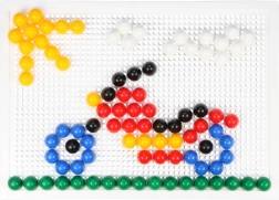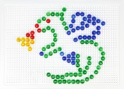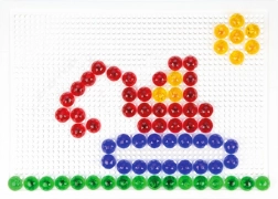 LENA mosaik med 100 farvede knopper er et ideelt valg til kreativ leg derhjemme og i børnehaven. Takket være det enkle system, hvor knopper sættes i en perforeret plade, træner børn koordinationsevner og tålmodighed, mens de skaber deres egne motiver – dyr, køretøjer eller fantasimønstre.