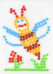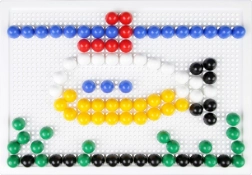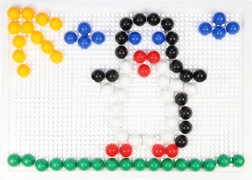 Knopper med en diameter på 10 mm i levende farver sidder sikkert i den solide plastplade på 21 × 16 cm for behagelig skabelse.