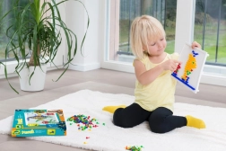 At sætte knopper i gitteret træner pincetgreb, hånd–øje-koordination og tålmodighed. Ideel aktivitet til førskolebørn.