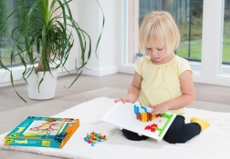 Uden skabeloner, kun med fantasi – børn kan samle dyr, køretøjer og egne mønstre og lære farver og former på en naturlig måde.
