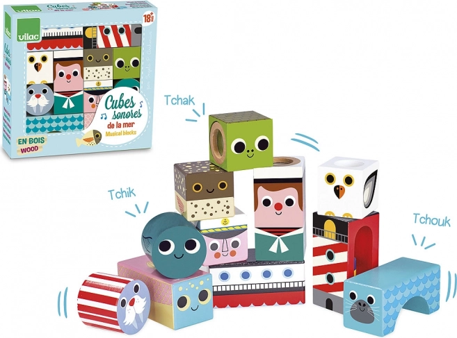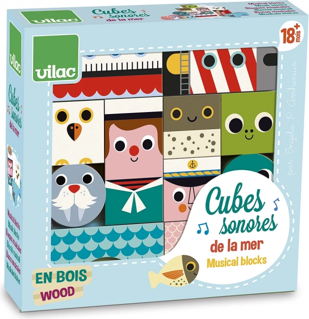 Sensoriske træklodser med havmotiver giver børn glæden ved at udforske former, farver og lyde. Når de ryster og bygger, træner børn greb, koordination og koncentration, mens de forskellige lydelementer styrker deres auditive perception. Illustrationerne af Ingela P. Arrhenius tilfører sættet en unik retrofornemmelse og en legende karakter.