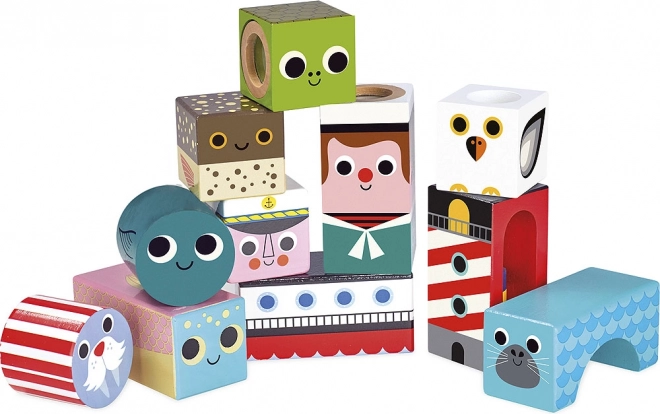 Pakken indeholder 11 omhyggeligt forarbejdede klodser i robust træ. Børn kan stable klodserne til tårne, sortere efter motiver eller farver og skabe deres egne havfortællinger – alt sammen understøtter kreativitet og fantasi. Den kompakte emballage egner sig også til rejser og børneværelset.