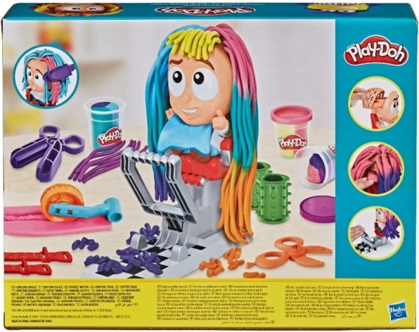 Med dette Play-Doh frisørsæt opstår skøre frisurer på nul komma fem. Sæt figuren i stolen, tryk ned, og ud af hovedet vokser en farverig manke, som du kan klippe, rede og pynte videre. Den flerfarvede modellervoks og de sjove tilbehør gør hver klipning til en ny historie fuld af fantasi.