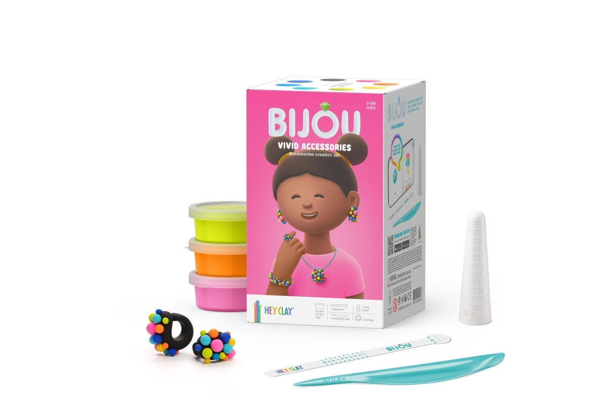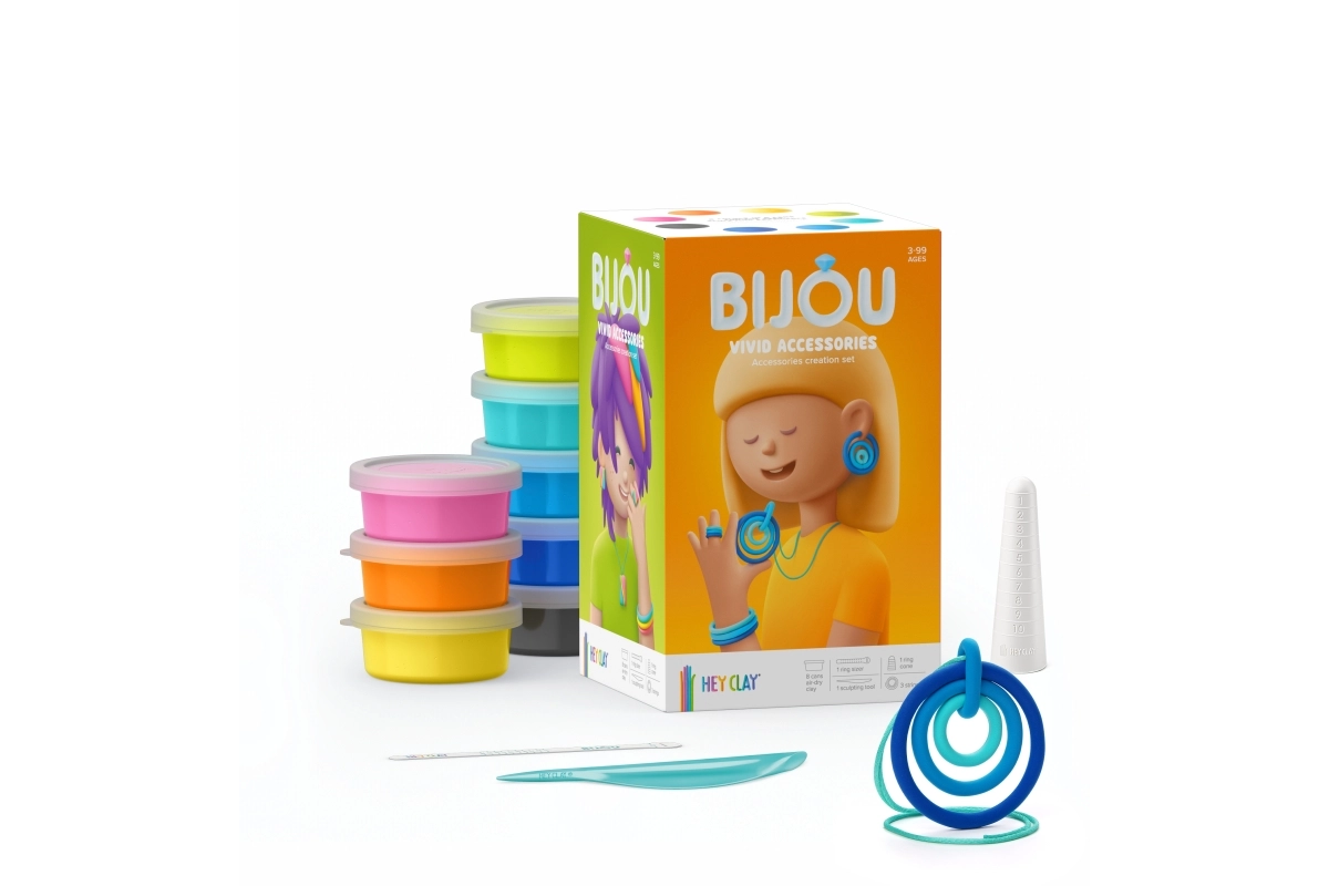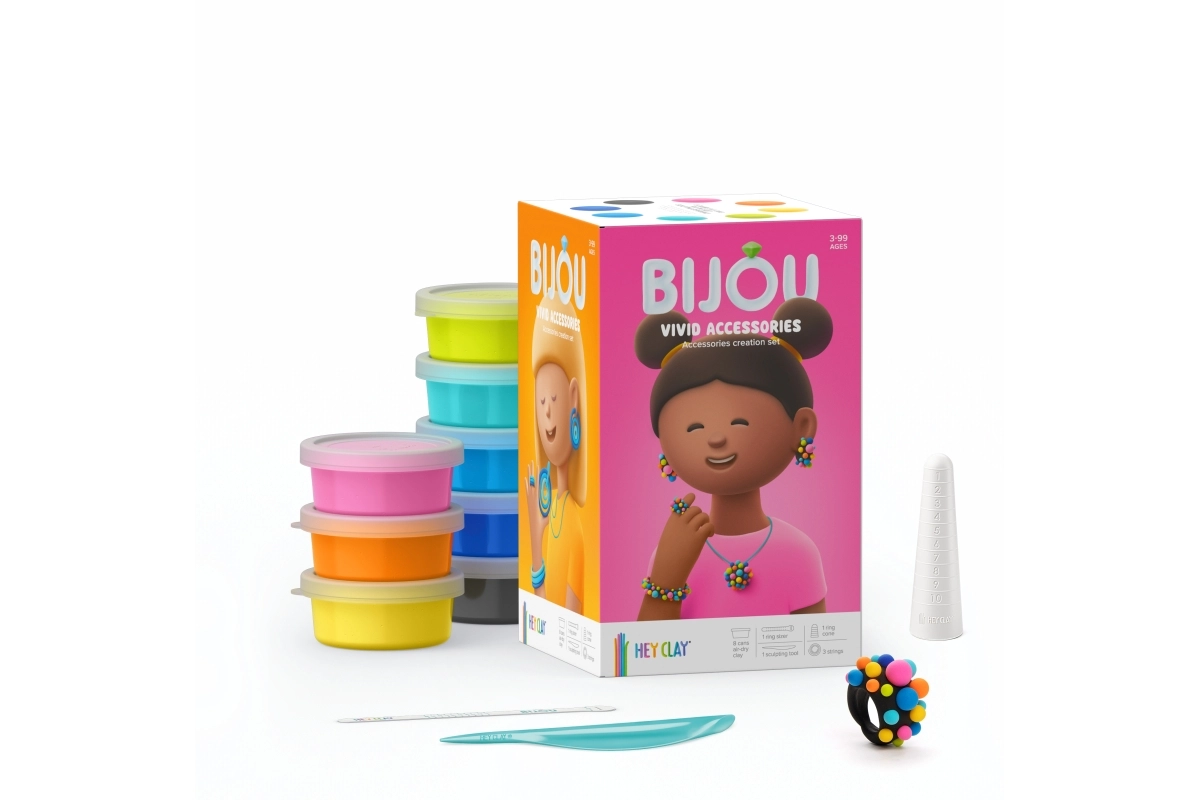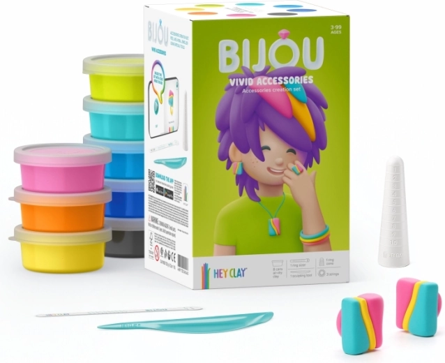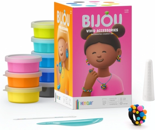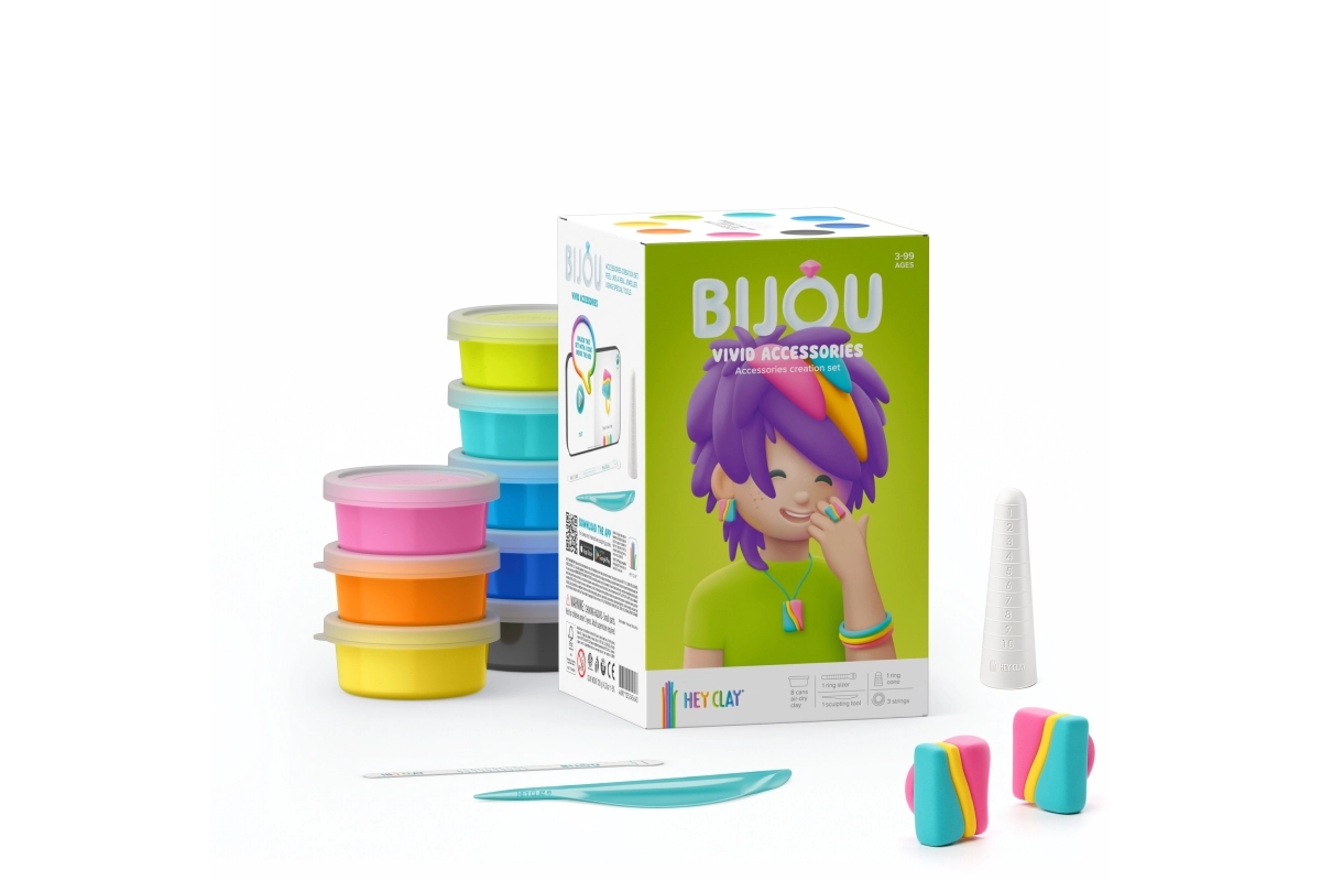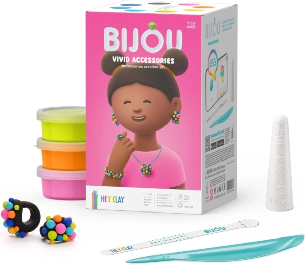 HEY CLAY Bijou Vivid-sættet er ideelt til små skabere, som elsker farver og unikke accessories. Takket være den bløde modellermasse kan børn nemt lave perler, vedhæng og andre pynteting, som efter lufttørring holder formen flot.