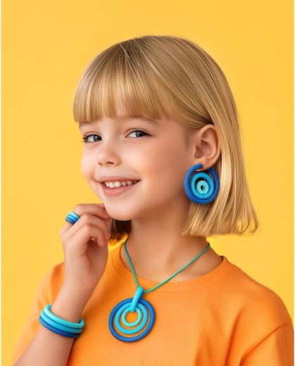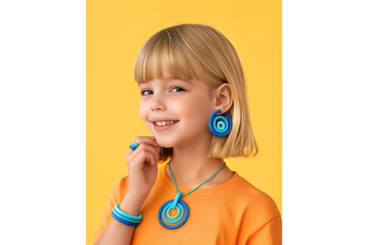 Sættet er velegnet til børn fra 3 år og giver timevis af sjov med at lave farverige smykker, som de stolt kan bære eller give væk.