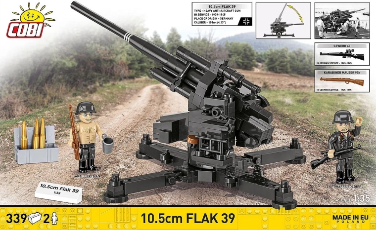 Modellen 10,5 cm Flak 39 bringer realismen fra tungt antiluftskyts fra Anden Verdenskrig ind i byggesætsverdenen. Den robuste konstruktion, gennemtænkte mekanik og historiske autenticitet gør den ideel for samlere og entusiastiske byggere. I skala 1:35 fremstår den flot som en selvstændig udstillingsmodel eller som del af et større diorama.