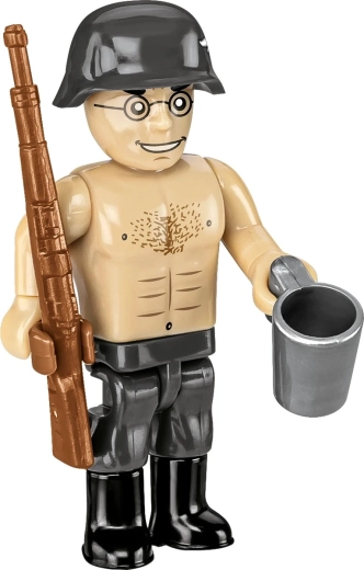 Takket være de bevægelige dele – justerbar elevasjon på løbet og drejeligt affutag – virker modellen overbevisende både ved leg og statisk udstilling. To artillerist-figurer med udstyr (karabiner, krus, ammunitionskasse) giver scenen liv og fortælling. 100% print uden klistermærker sikrer holdbarhed og et rent udseende selv efter mange timers sjov.