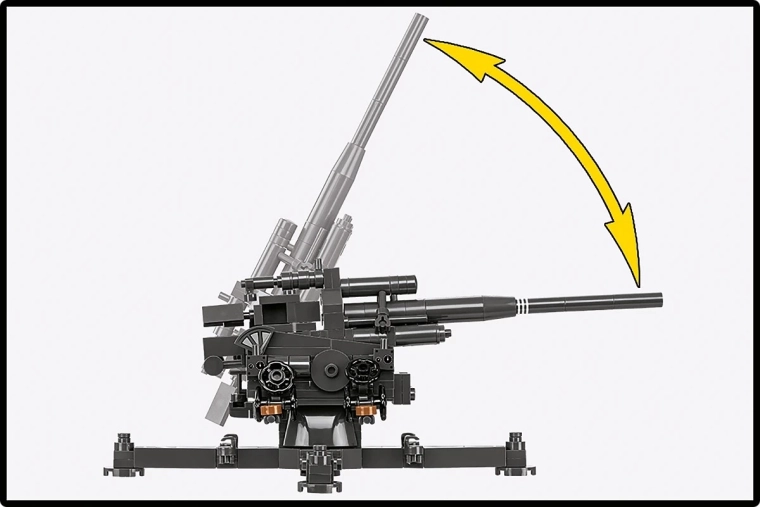 Justerbar elevasjon på løbet, drejeligt affutag og detaljerede betjeningsgreb giver modellen autenticitet og muliggør dynamiske positurer ved leg og fotografering.