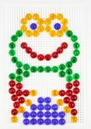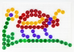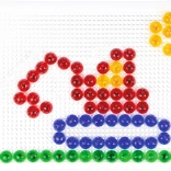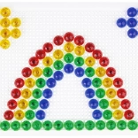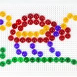 De gennemsigtige farvede knapper giver hvert motiv ekstra glød og motiverer børn til at afprøve nye kombinationer af former og farver.