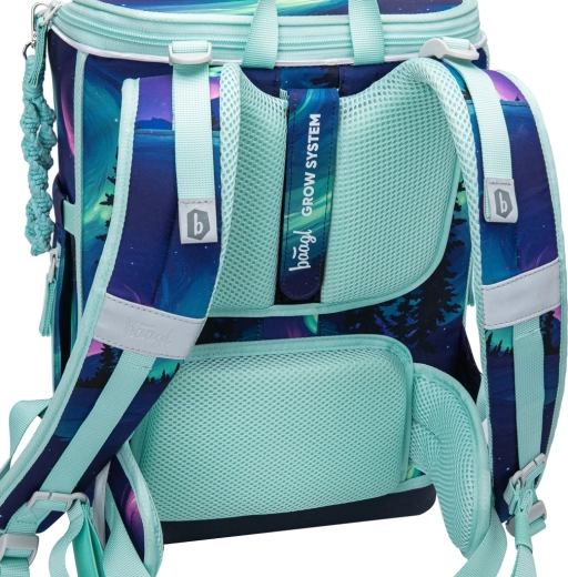 Aktetasken BAAGL Zippy Plus Aurora GRS er designet til komfortabel og sund bæring fra 1. klasse. Takket være det glidende rygsystem med justering i tre størrelser og fuldt justerbare remme tilpasser den sig barnets vækst og korrekt kropsholdning. Den solide bund og den lette konstruktion hjælper med at bevare stabil form og sikkerhed i daglig brug.