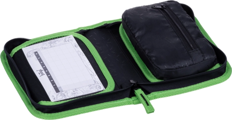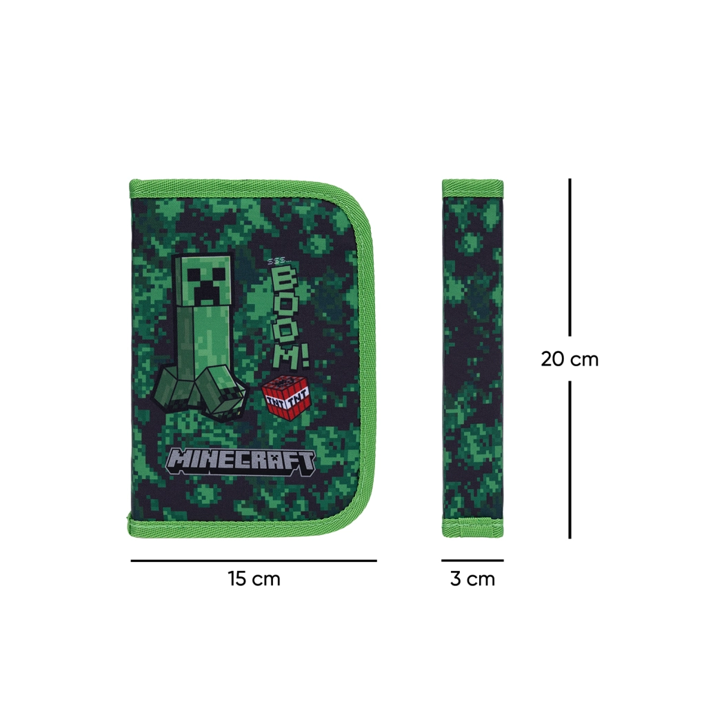 Stilfuldt skolepenalhus med MINECRAFT Boom-motiv, der byder på praktisk ét-lags design med to flapper, holdbar YKK-lynlås og overskuelig indretning. Indvendigt finder du en lille lomme til småting, et vindue til skema og stærke elastikker, som også er kompatible med trekantede farveblyanter og tuscher. Penalhuset leveres uden indhold og er fremstillet af genanvendt materiale.