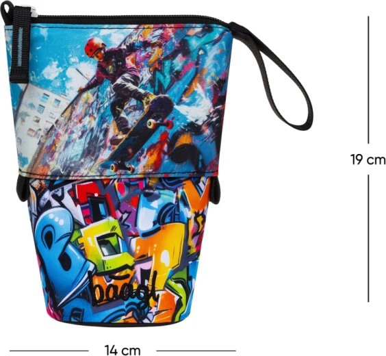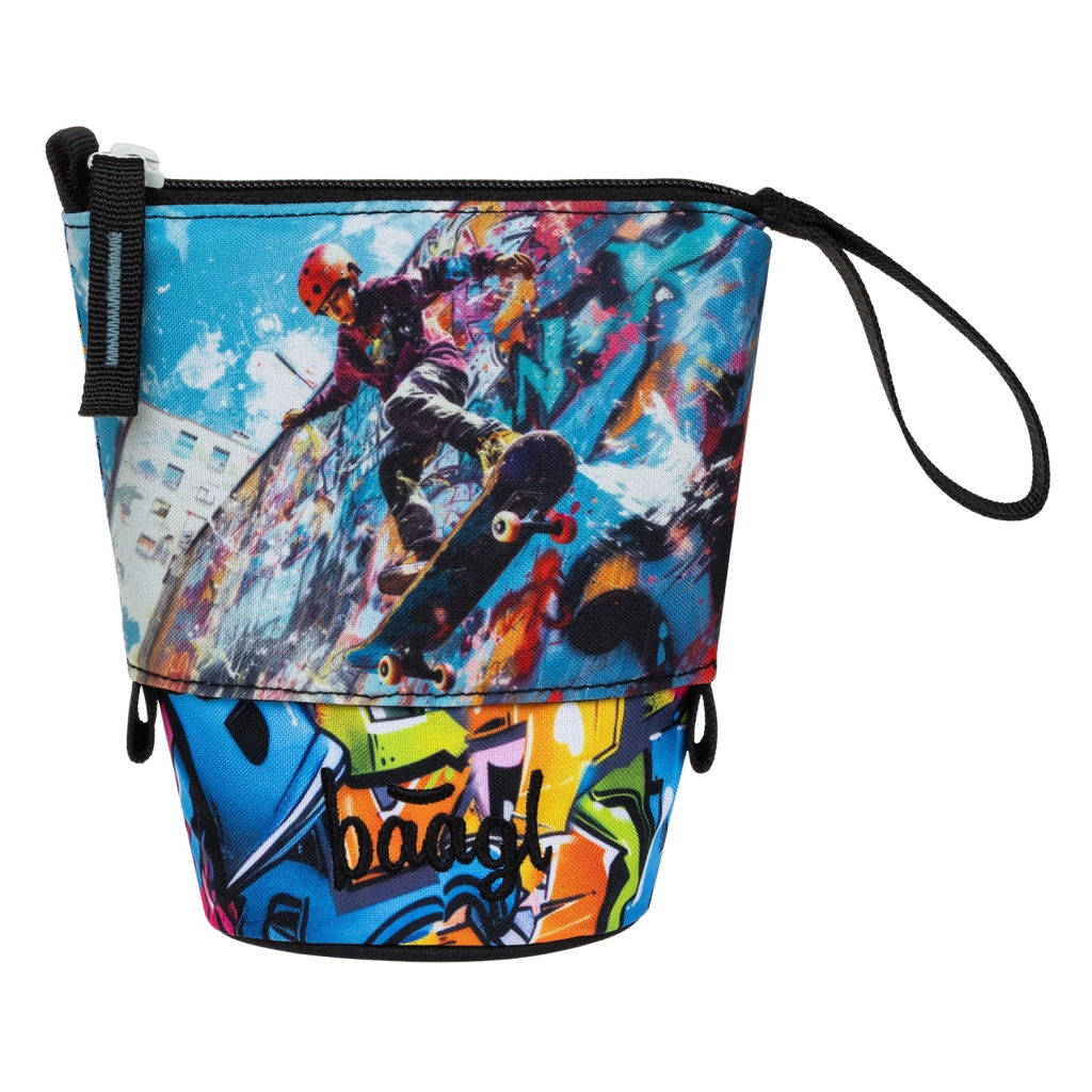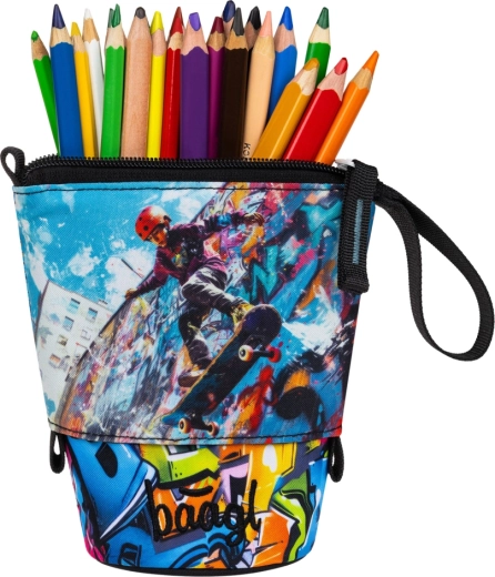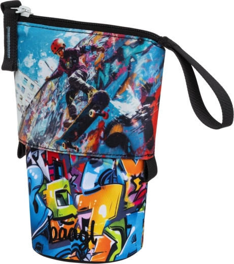 Penalhuset er ansvarligt fremstillet og bærer certificeringen Global Recycled Standard (GRS), hvilket bekræfter brugen af mindst 50 % genanvendte materialer samt opfyldelse af høje sociale og miljømæssige krav. Det forener bæredygtighed, funktionalitet og et attraktivt graffiti-design med skateboarder.