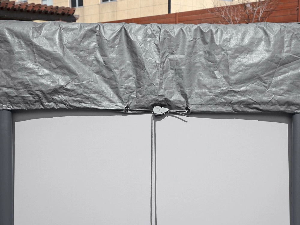 Det vindresistente fastgørelsessystem og strammefunktioner holder presenningen stabilt på plads og forhindrer, at den blæser af.