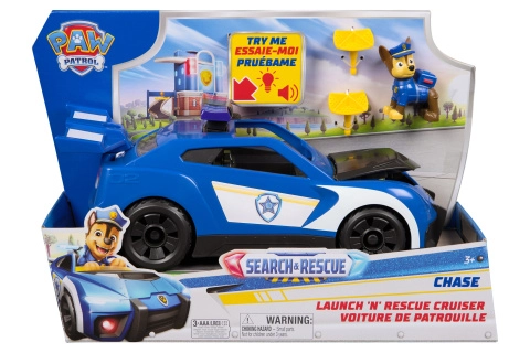 Tag på redningsmission med CHASE-køretøjet fra Paw Patrol. Den cirka 28 cm lange bil byder på lys- og lydeffekter, affyringsmekanisme og en udtrækkelig drone i spoileren for fantasifuld action. Med ét tryk på lyslisten aktiverer du alle tre funktioner, og eventyret kan begynde.
