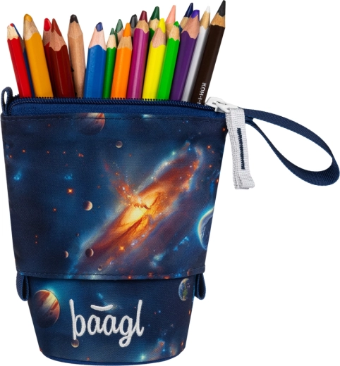 Oplev et praktisk og bæredygtigt penalhus, der vokser med skoleelevernes behov. Pastelkovník Baagl Universet kombinerer moderne design, funktionalitet og holdbarhed i ét. Den solide, vandafvisende konstruktion holder formen og beskytter pålideligt blyanter, farveblyanter og tuscher på vej til skole og under undervisningen.