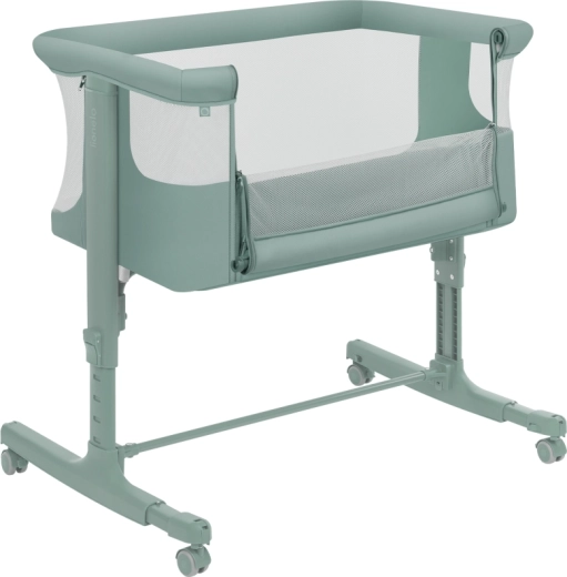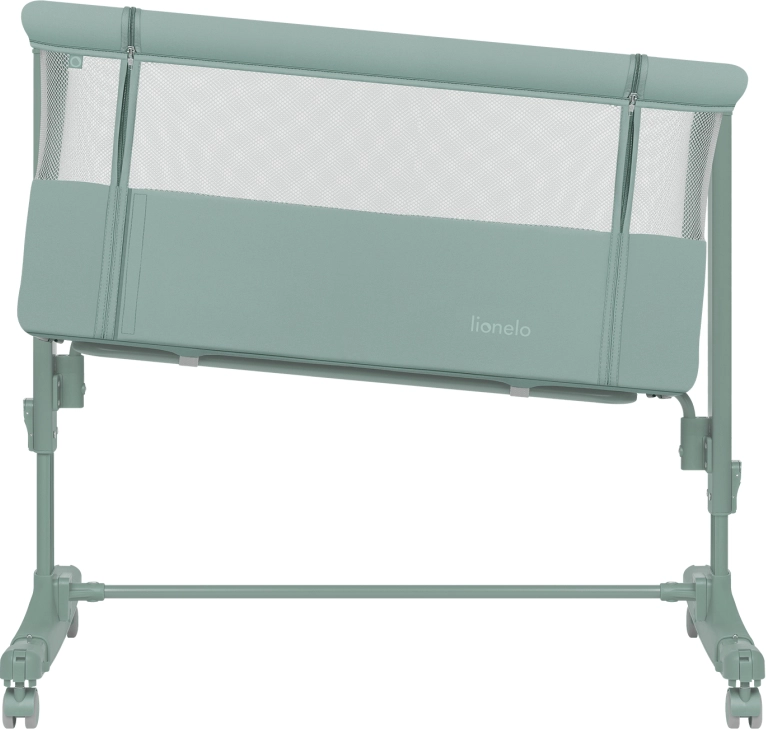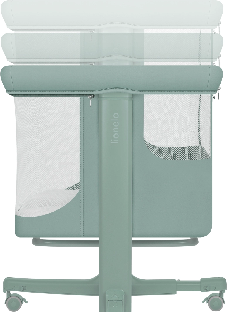 Baby-sengen LIONELO AURORA 3-i-1 i farven Green Sage vokser med dine behov. Som bedside-cradle giver den tryg nærhed om natten, som fritstående fungerer den som en hyggelig seng, og i vuggetilstand beroliger den barnet med blid vuggen. De åndbare netsider sikrer luftcirkulation og konstant overblik over babyen.