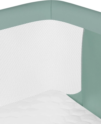 Den åbningsbare sidepanel giver hurtig og sikker adgang til babyen, mens de netbeklædte sider sikrer god luftcirkulation og synlighed.