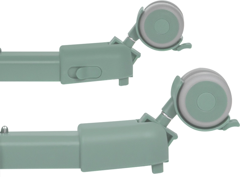 Fire drejelige hjul med bremser muliggør smidig flytning i hjemmet og stabil fastlåsning på stedet for maksimal sikkerhed.