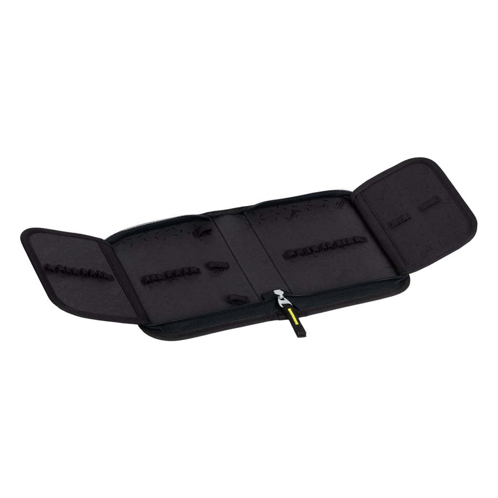 Med følger et rummeligt etagers penalhus med to flapper, kvalitetslynlås fra YKK, lille lomme til småting og vindue til skema. Stærke elastikker holder også trekantede farveblyanter og tuscher. Posen med lynlåslomme er ideel til skiftesko, idræt eller fritidsaktiviteter, med slidstærkt aftageligt materiale, stærke snore og strop til nem fastgørelse på rygsækken.