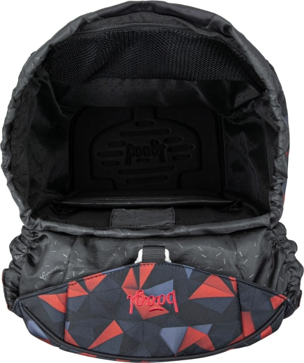 Rummeligt hovedrum med organisator, lette plader til beskyttelse af hæfter, samt en forreste termolomme, der holder madpakken frisk længere og adskiller lugte fra skolebøgerne.