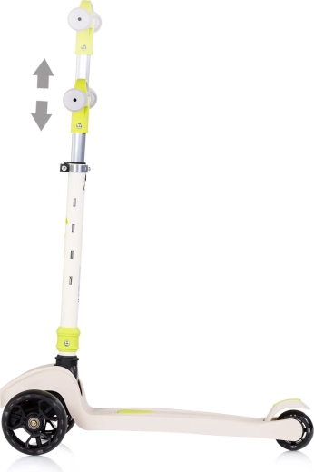 Giv børn glæden ved en tur, der er sjov, stabil og sikker. Børneløbehjulet Chipolino Moxie tilbyder en trehjulet konstruktion for bedre balance, højdejusterbart styr, en foldemekanisme til nem transport og LED-lysende hjul for synlighed og effekt. Der medfølger trinbremse på baghjulet samt musik- og lyseffekter for endnu mere sjov.