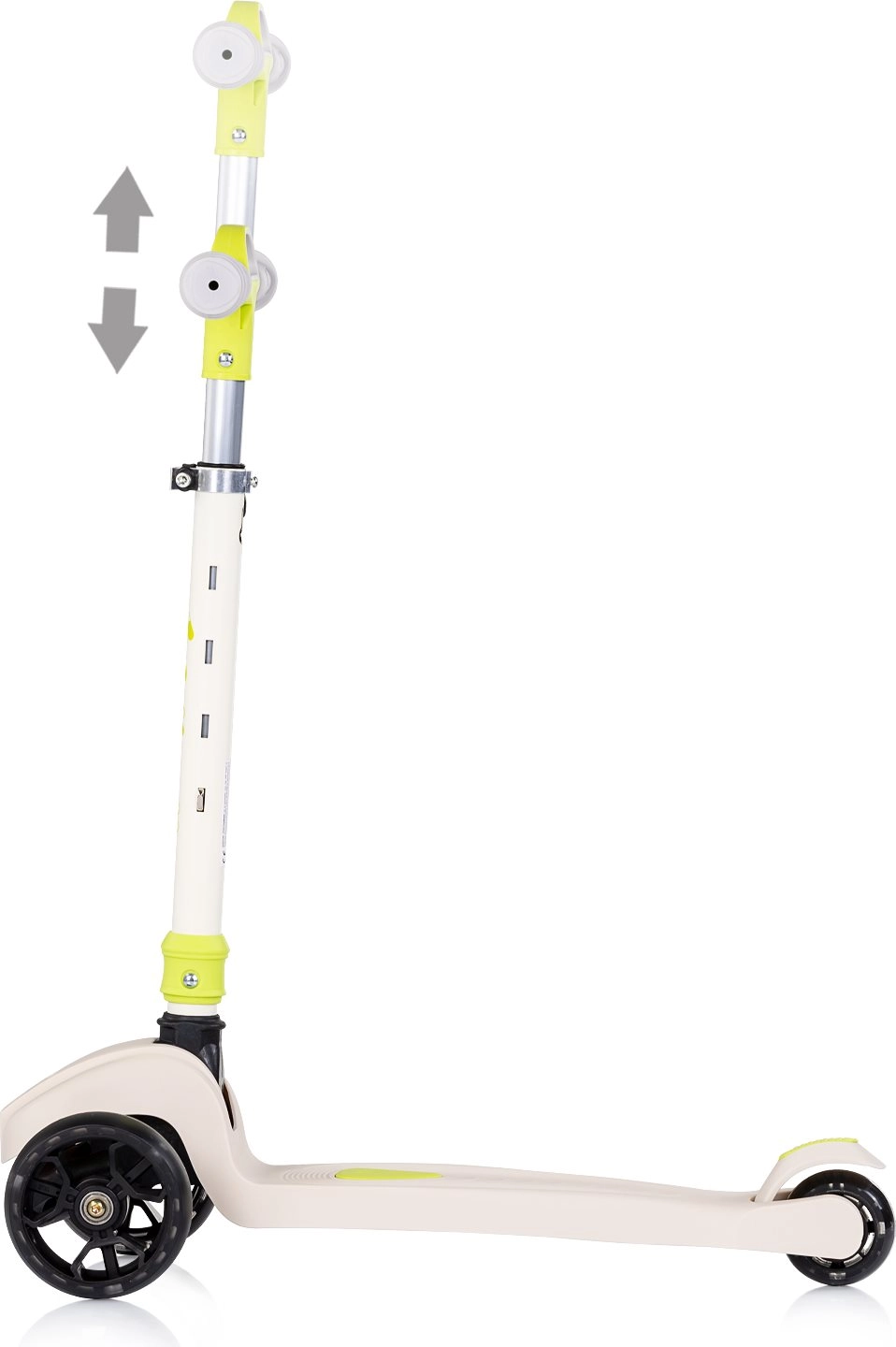 Løbehjulet Chipolino Moxie er det ideelle valg for små kørere, der lærer koordination og balance. Takket være to store forhjul og ét baghjul er kørslen stabil og intuitiv. Den lave og brede trædeflade giver tryghed, mens det højdejusterbare T-styr vokser med barnet.