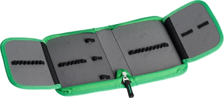 Gennemtænkt udstyr til skole og fritid – et-etagers penalhus med to flapper (uden indhold) holder styr på skriveredskaberne. Skoposen med karabinhage til fastgørelse på tasken har en praktisk bundlomme med lynlås og stærke snore til at bære på ryggen. Børneforklædet i aftørbart materiale med to lommer er ideelt til billedkunst og håndværk. Hals-pungen med navneskilt, justerbar snor med sikkerhedslås og velcrolukning opbevarer sikkert mønter, chip og nøgler.