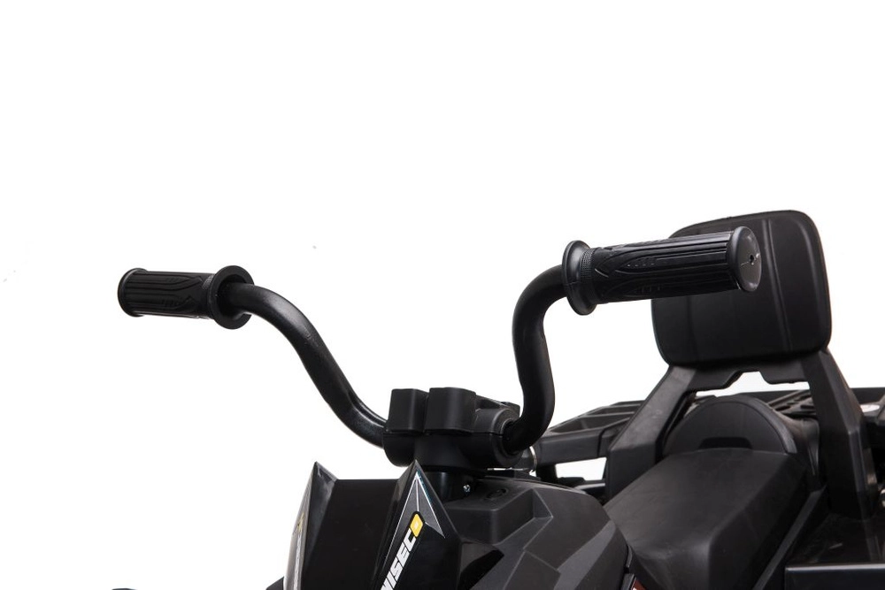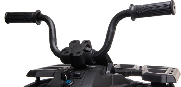 Komforten sikres af et sæde med ryglæn, ergonomisk skridsikkert styr og brede fodstøtter for en sikker siddestilling. Den forreste kofanger beskytter karrosseriet og giver ATV’en et robust look. Et ideelt valg til børn, der elsker action og stil.