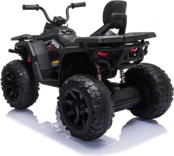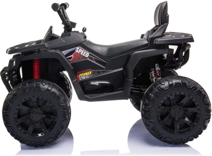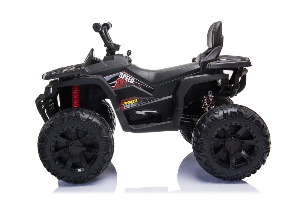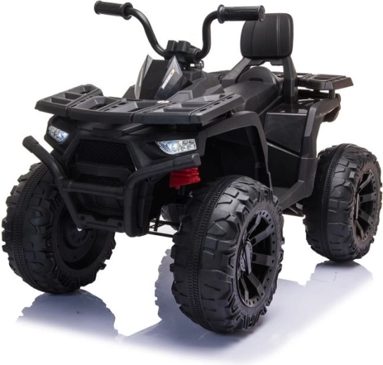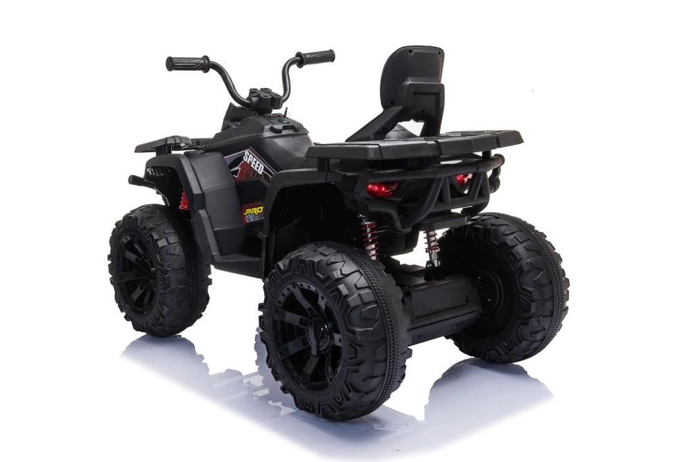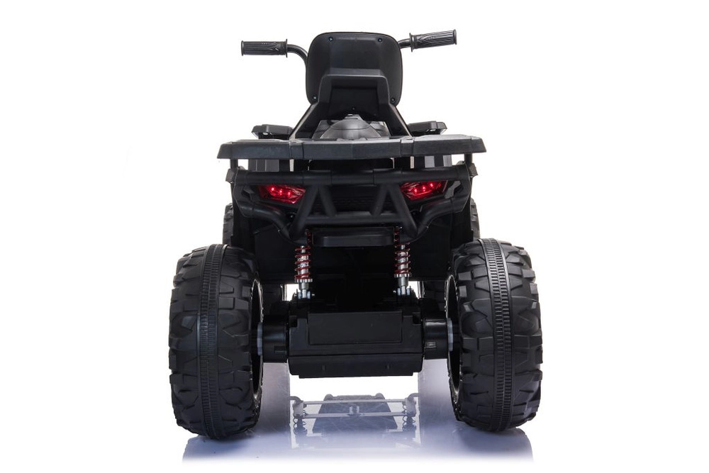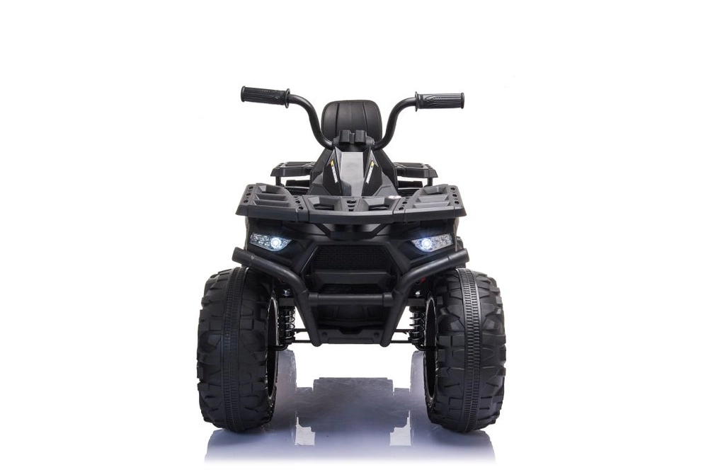 Robust elektrisk børne-ATV i elegant sort tilbyder brede terrændæk, stabil firehjulet undervogn og lysende LED-forlygter for en realistisk køreoplevelse. Ideel til små eventyrere – komfortabelt sæde med ryglæn, sikker betjening og et kraftigt terrænlook vil begejstre ethvert barn.