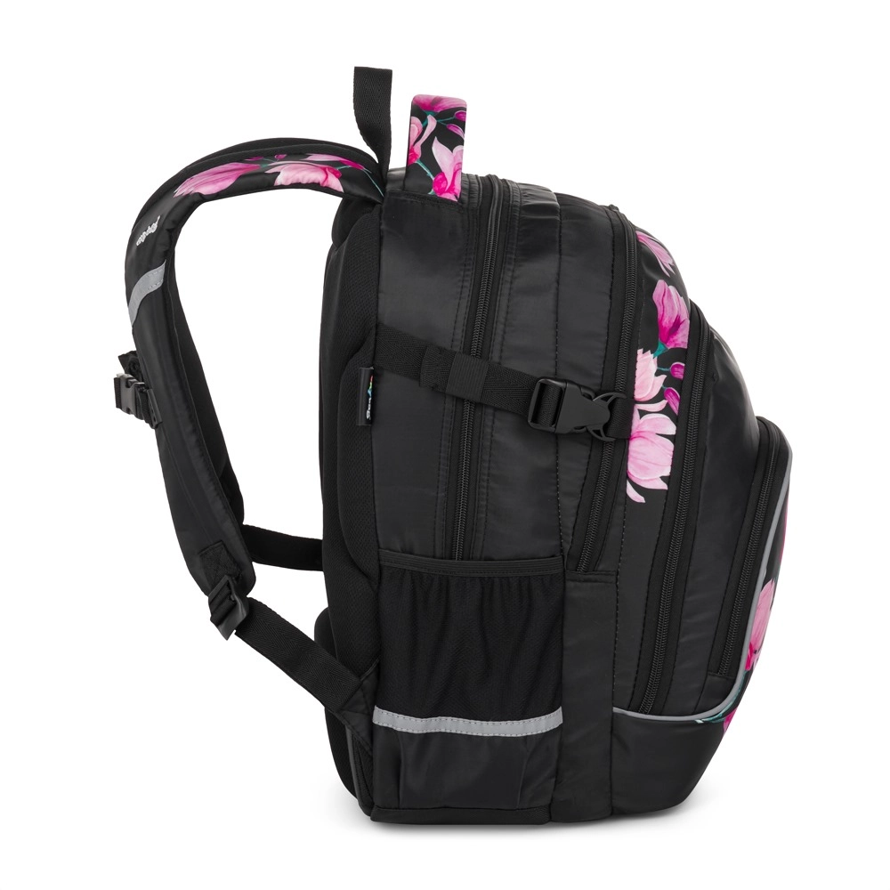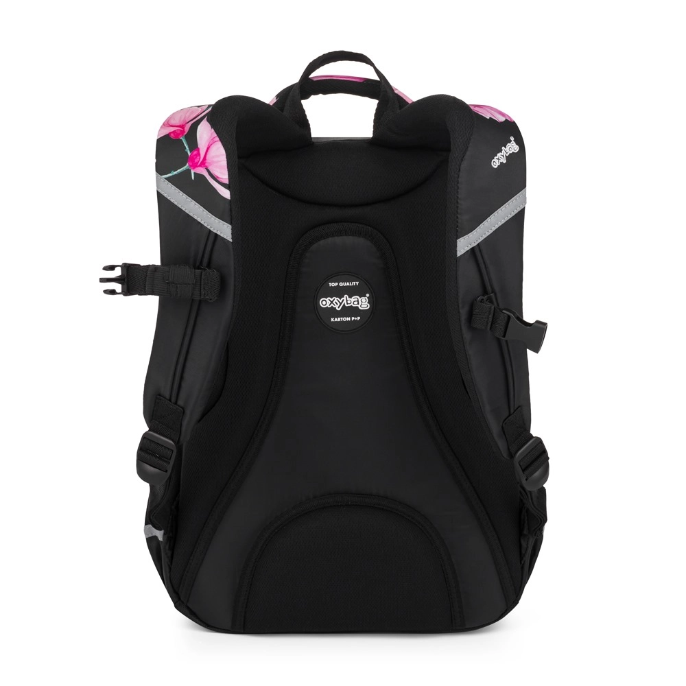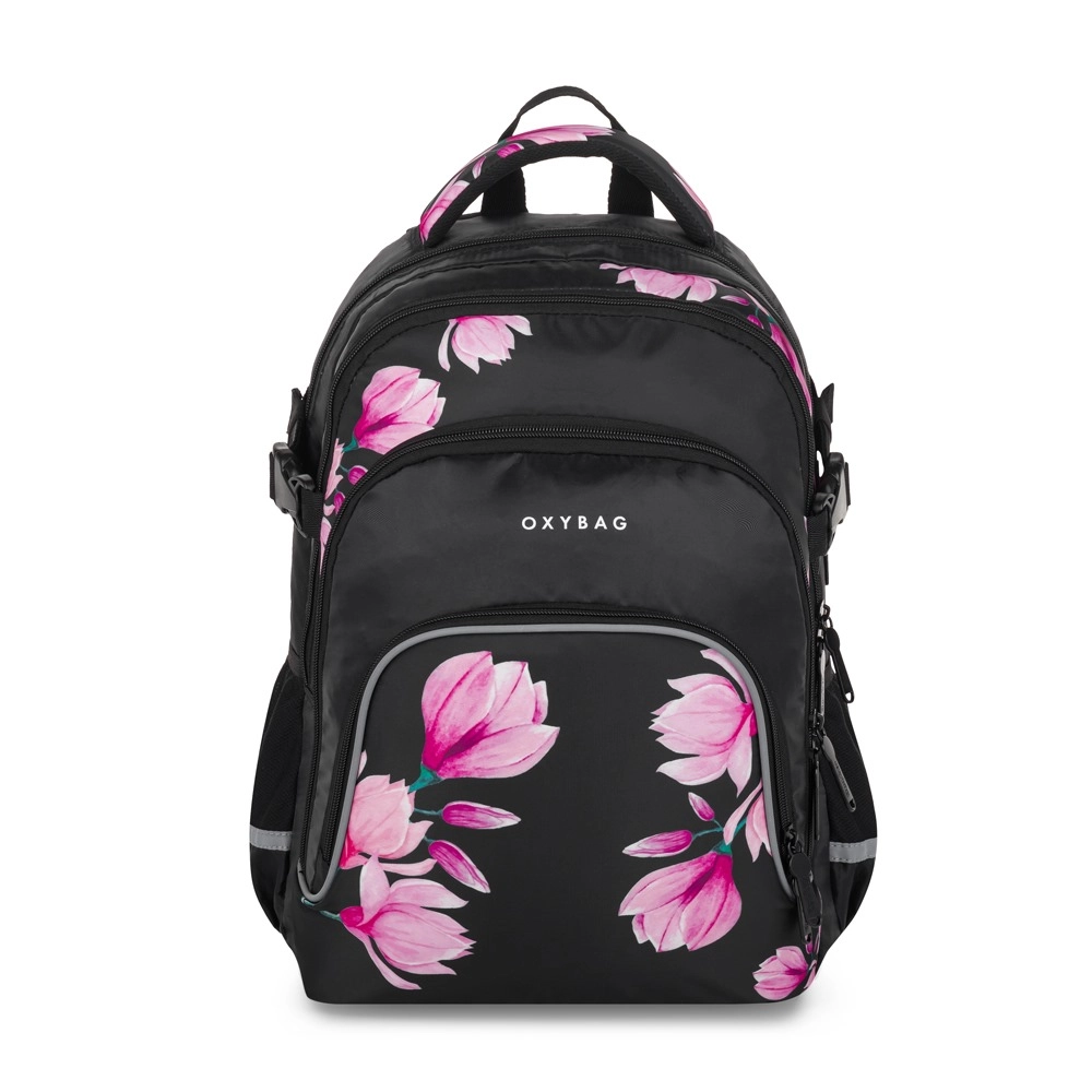 OXYBAG Scooler Magnolia er en pålidelig makker til både skole og fritid. Tre rummelige sektioner rummer lærebøger, hæfter og madpakke, de forreste lommer med organizer holder styr på småting, og en indvendig lomme beskytter din bærbare. Sidelommen er ideel til drikkeflaske, mens den praktiske holder til nøgler eller chip sparer tid i hverdagen.