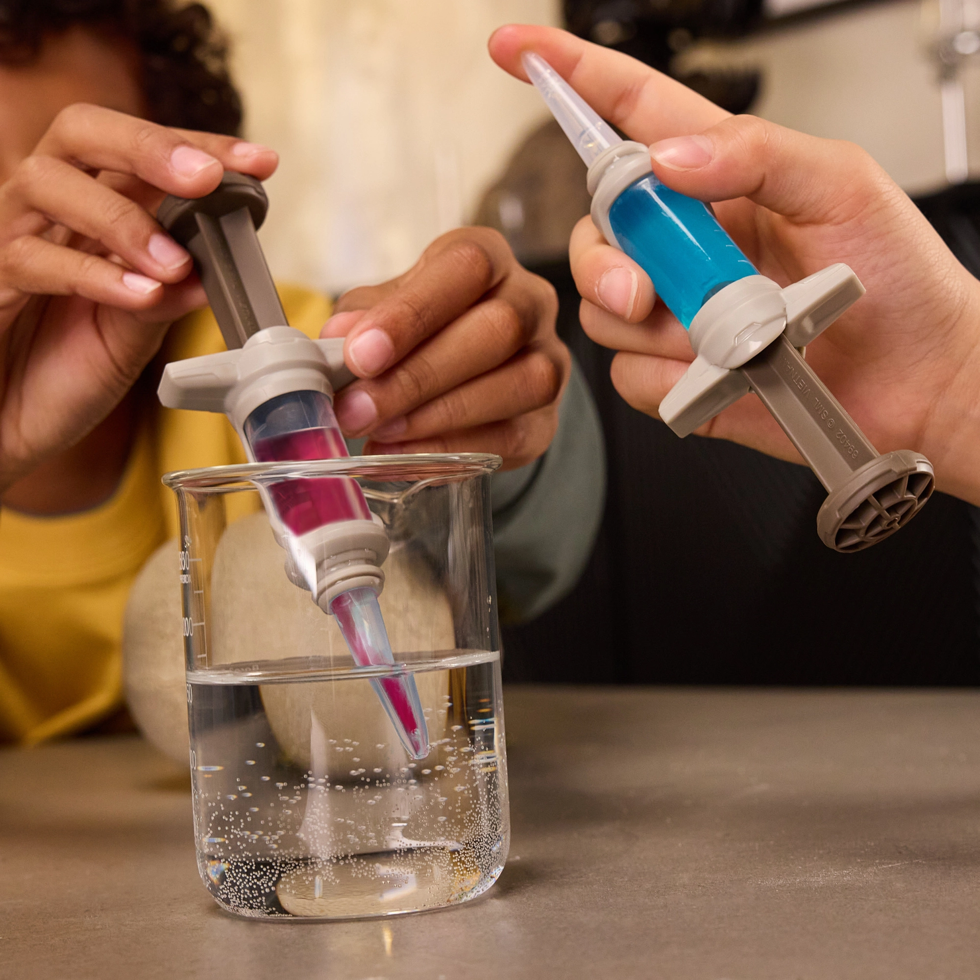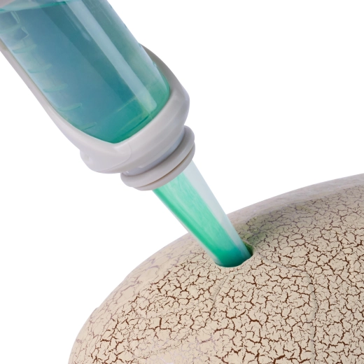 Den gennemsigtige pipette/injektor muliggør præcis dosering af væske i ægget og igangsætter klækkeprocessen. Børn får en enkel, sikker og fængende vand-eksperimentoplevelse.