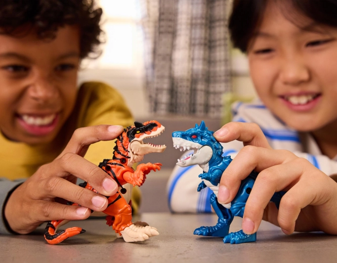 Hver kompakt dinosaurfigur har detaljeret udførelse, bevægelig kæbe og lemmer til dynamiske positurer, kampe og fortælling af egne historier.