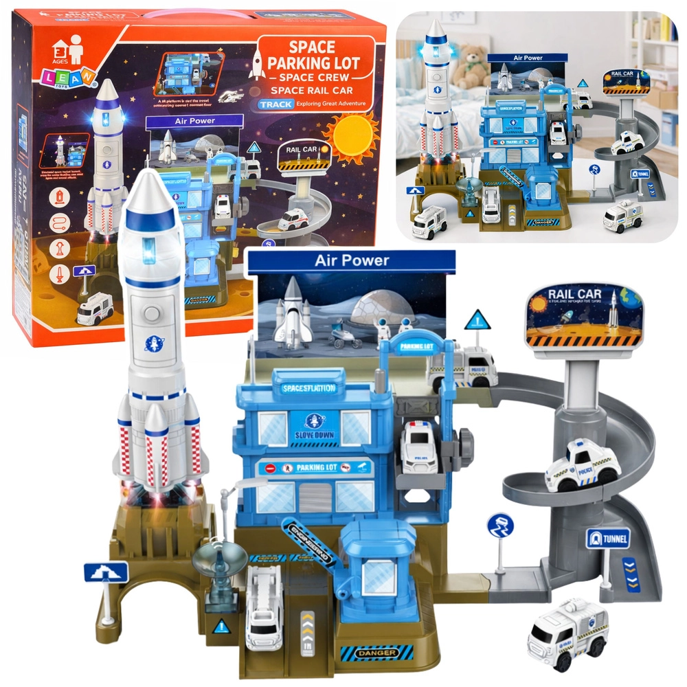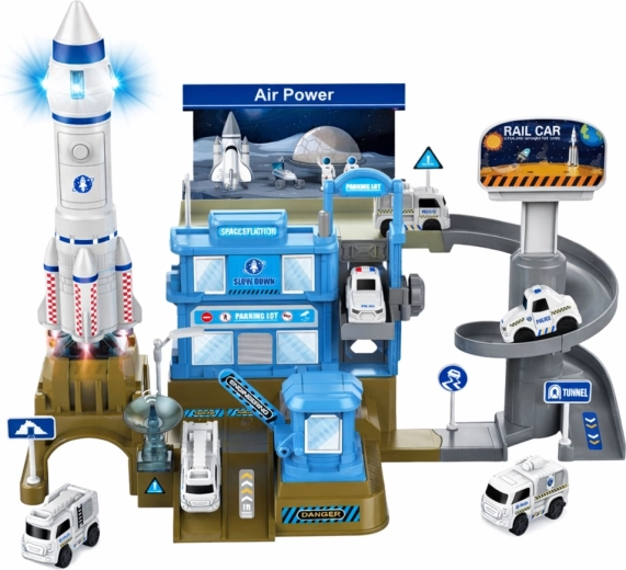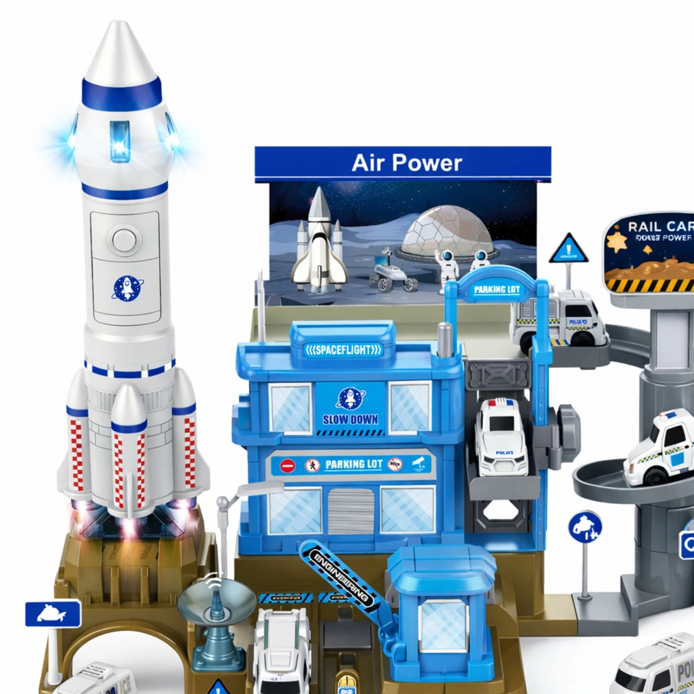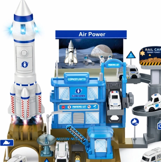 Denne gennemarbejdede rumbase med raket åbner en verden af fantasi, missioner og opdagelser for børn. Den fleretagers konstruktion med spiralformet vej, parkeringsområde, elevatorsystem og raketaffyring stimulerer kreative scenarier og flydende leg.