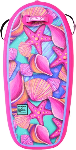 Det legesyge design med muslinger og søstjerner skiller sig ud på stranden og ved søen. Bodyboardet er ideelt til at lære at ride på bølger, træne benspark og til sikker opdrift i vandet.