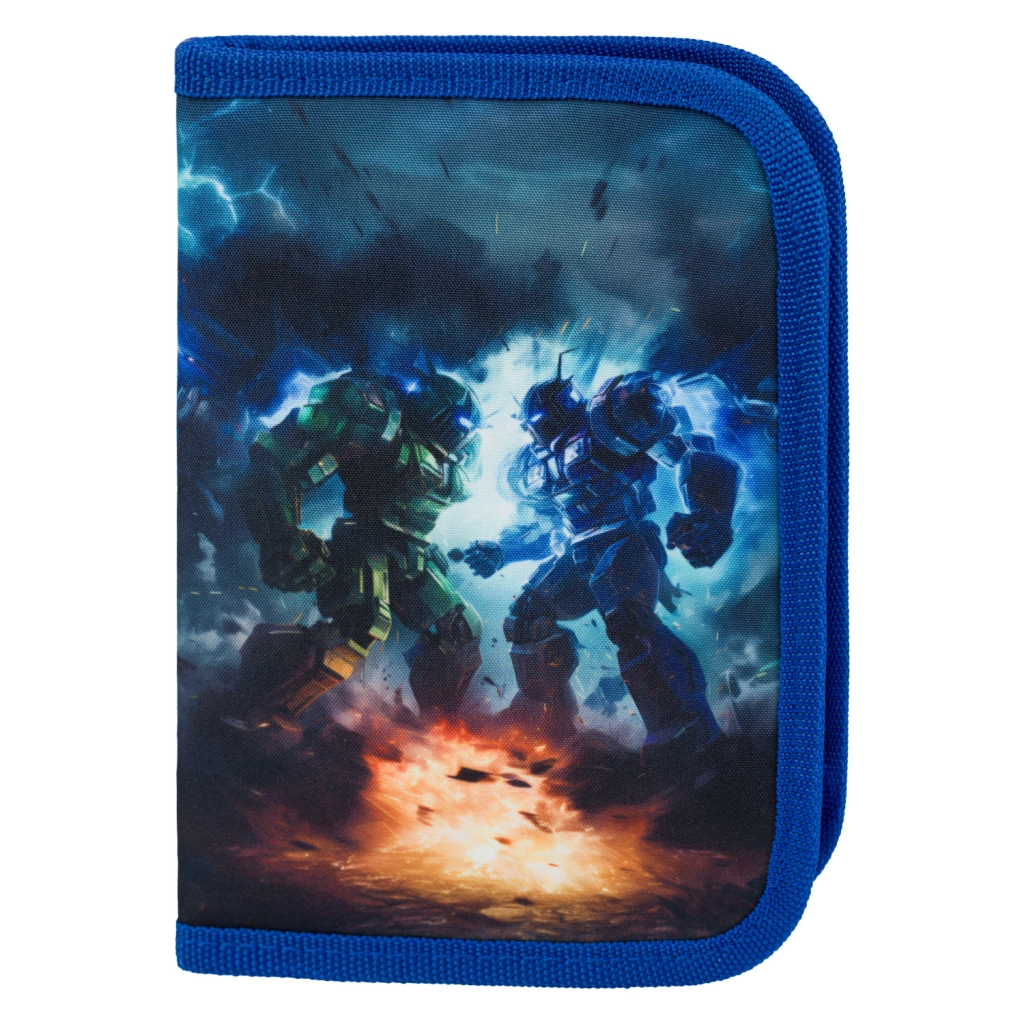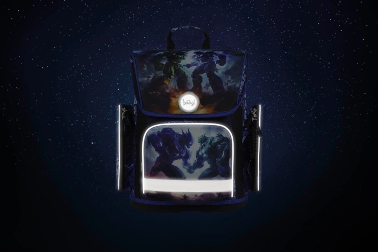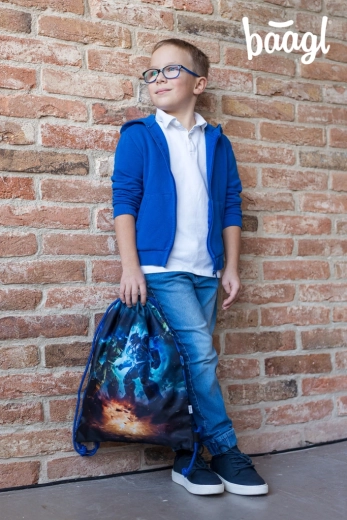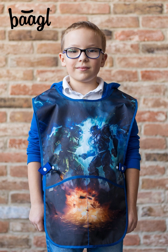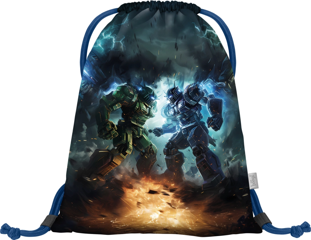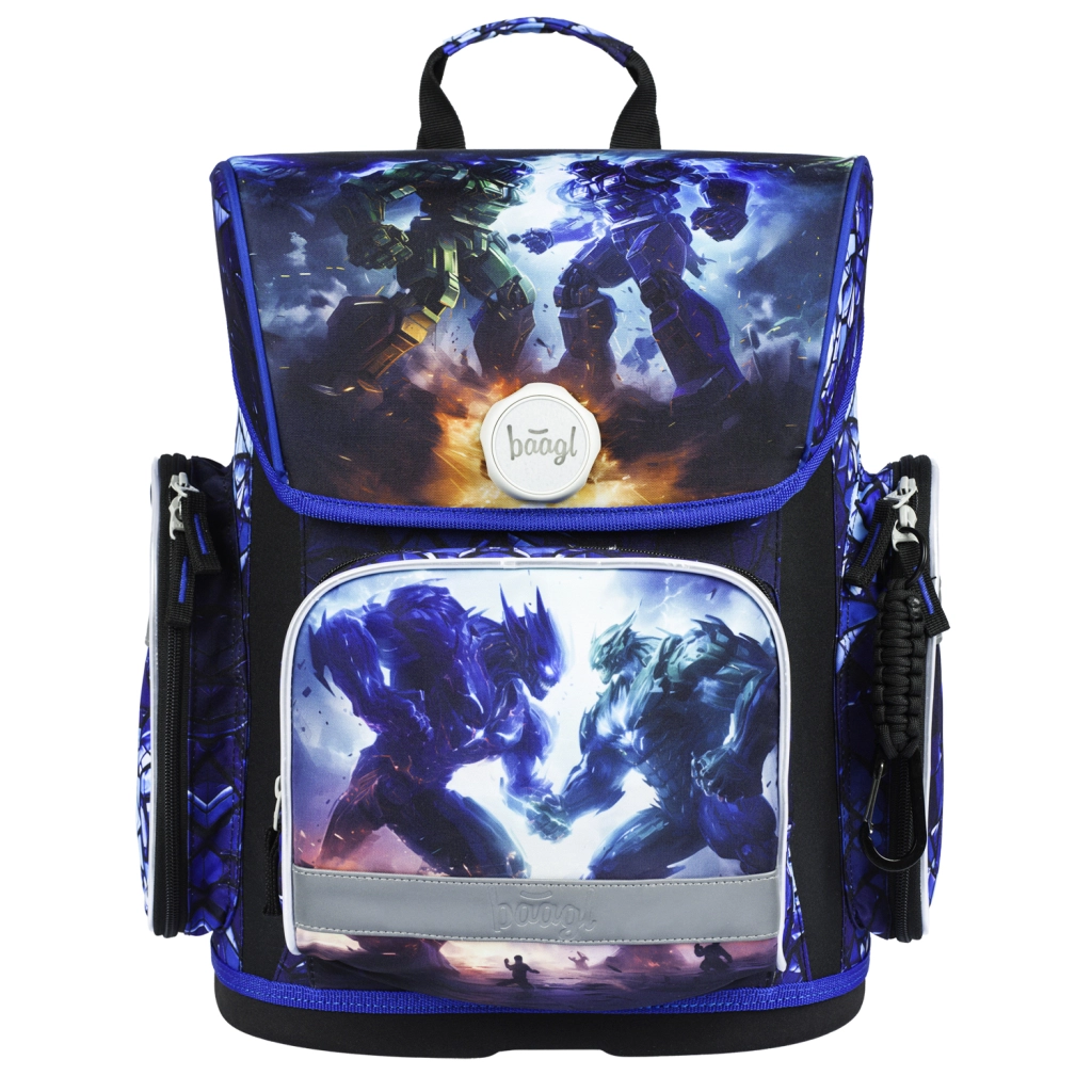 BAAGL skolesæt Robotter giver børn alt, hvad de behøver til skole og fritid – i et ensartet design med motiv af robotkamp. Hovedstjernen er en solid, let og ergonomisk skoletaske med ERGO ADJUSTABLE SYSTEM, der vokser med barnet og hjælper med korrekt vægtfordeling. Den magnetiske Fidlock-lukning muliggør lynhurtig åbning og automatisk lukning.