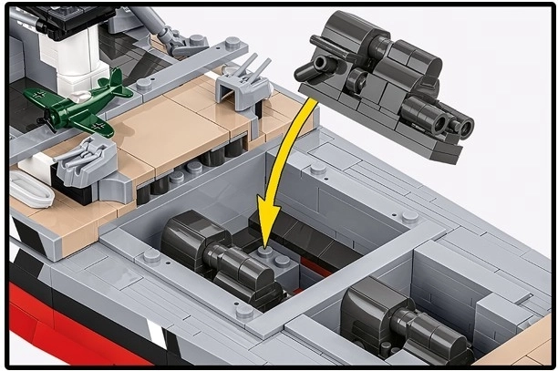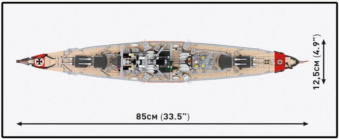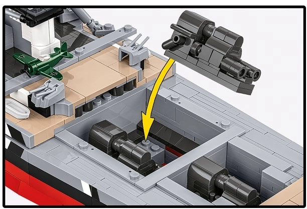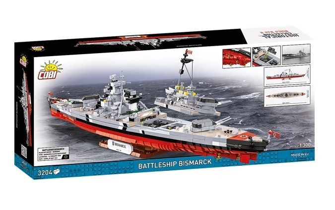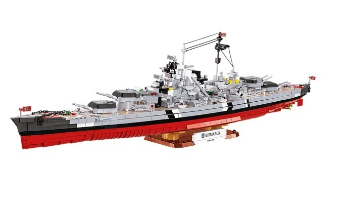 En ikon fra søfartshistorien i form af BISMARCK-modellen leverer en monumental oplevelse ved både bygning og udstilling. Takket være troværdige proportioner, detaljeret overbygning og bevæbning skiller den sig ud i enhver samling. Alle markeringer og detaljer er holdbart påtrykt direkte på delene, så modellen bevarer sit perfekte udseende i mange år.