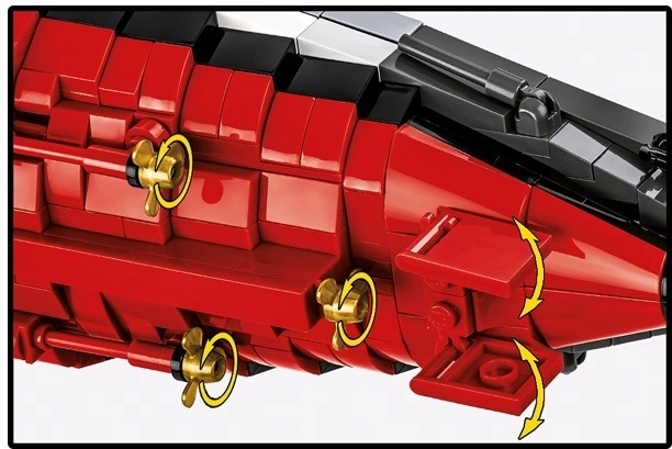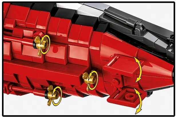 Byggesættet kombinerer realistiske funktioner (drejelige tårne, bevægelige elementer, udtagelige dele af fremdriften) med en smart konstruktion og en intuitiv vejledning, som gør selv et så stort projekt flydende og underholdende. Der medfølger en elegant stand med skilt til sikker og repræsentativ udstilling.
