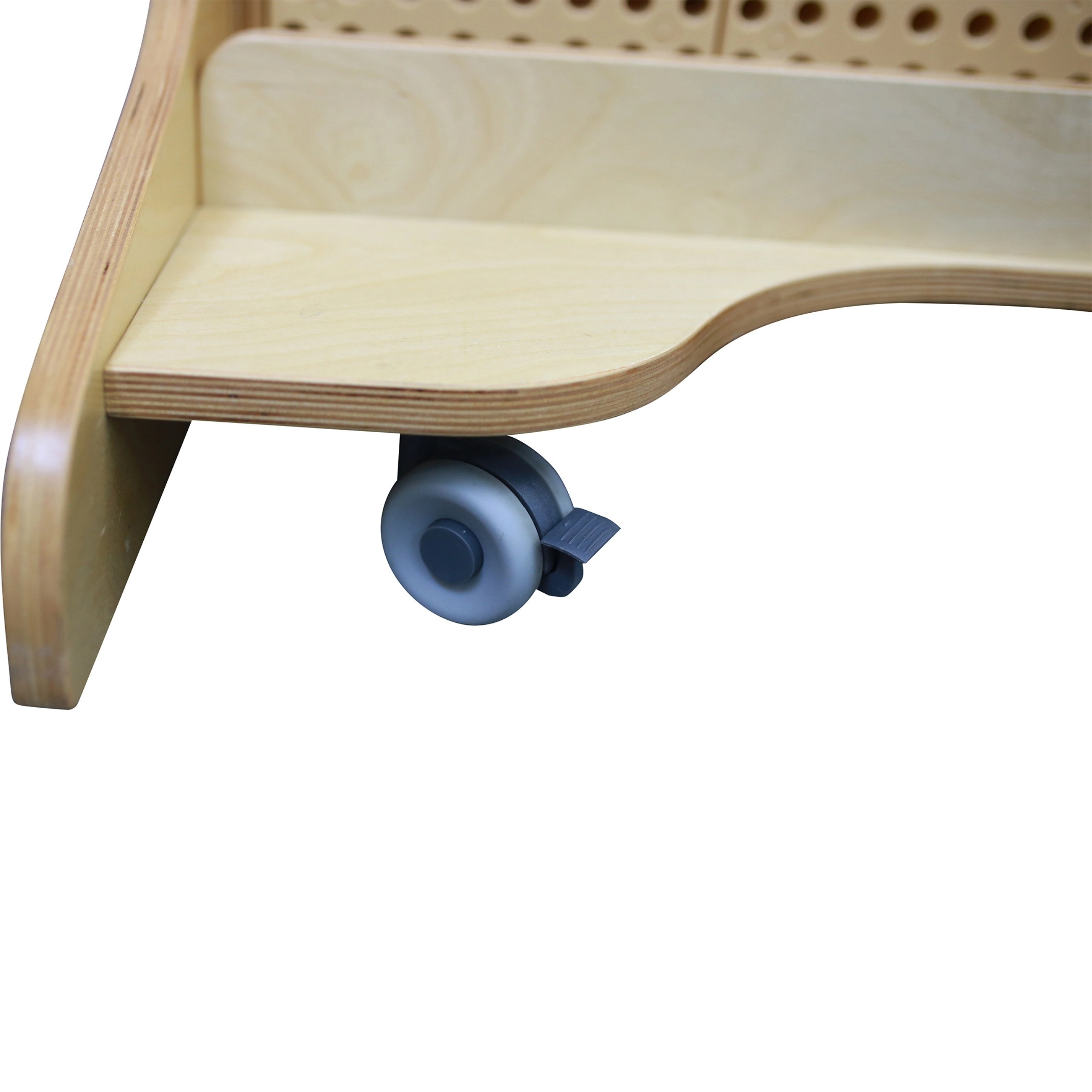 Stor perforeret plade med robust konstruktion og hjul med bremse giver nem flytning og stabilt arbejde under projekter.