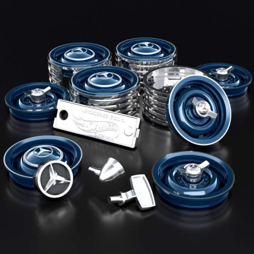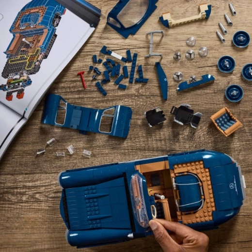 Byggesættet indeholder også metalkomponenter til personalisering – du kan skifte fælge, spejle eller tilføje et originalt logo. I pakken finder du desuden en lille metalmodel 1:64, som gør sig godt i vitrinen. Den elegante gaveæske vil glæde enhver fan af konstruktionsprojekter.