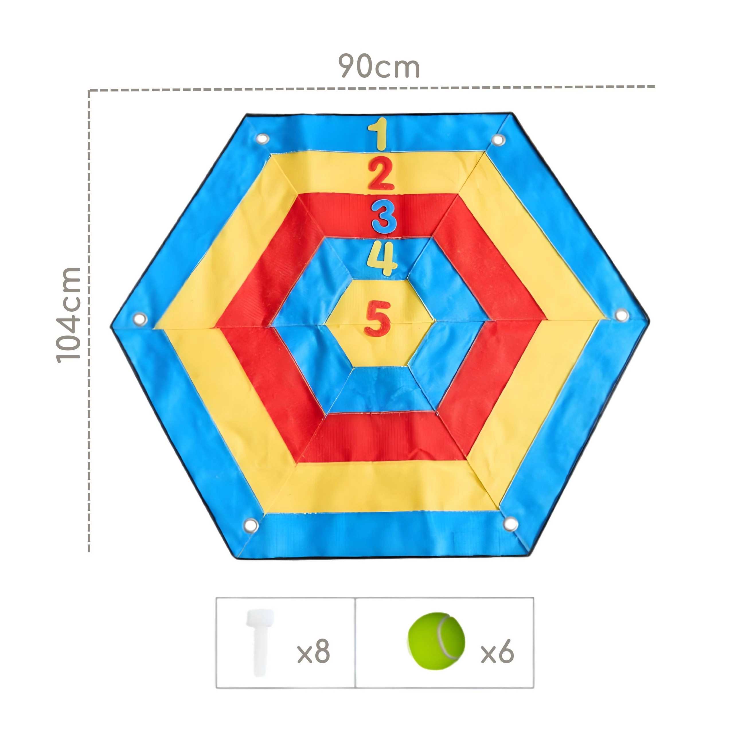 Underholdende og sikker præcisionsleg for børn fra 3 år, som kombinerer talindlæring med bevægelse. Stor sekskantet målplade med farvede cirkler og tal samt bløde velcrokugler udvikler koordinationsfærdigheder, motorik og gruppesamarbejde – ideel til hjemmet, børnehaven og skolen.
